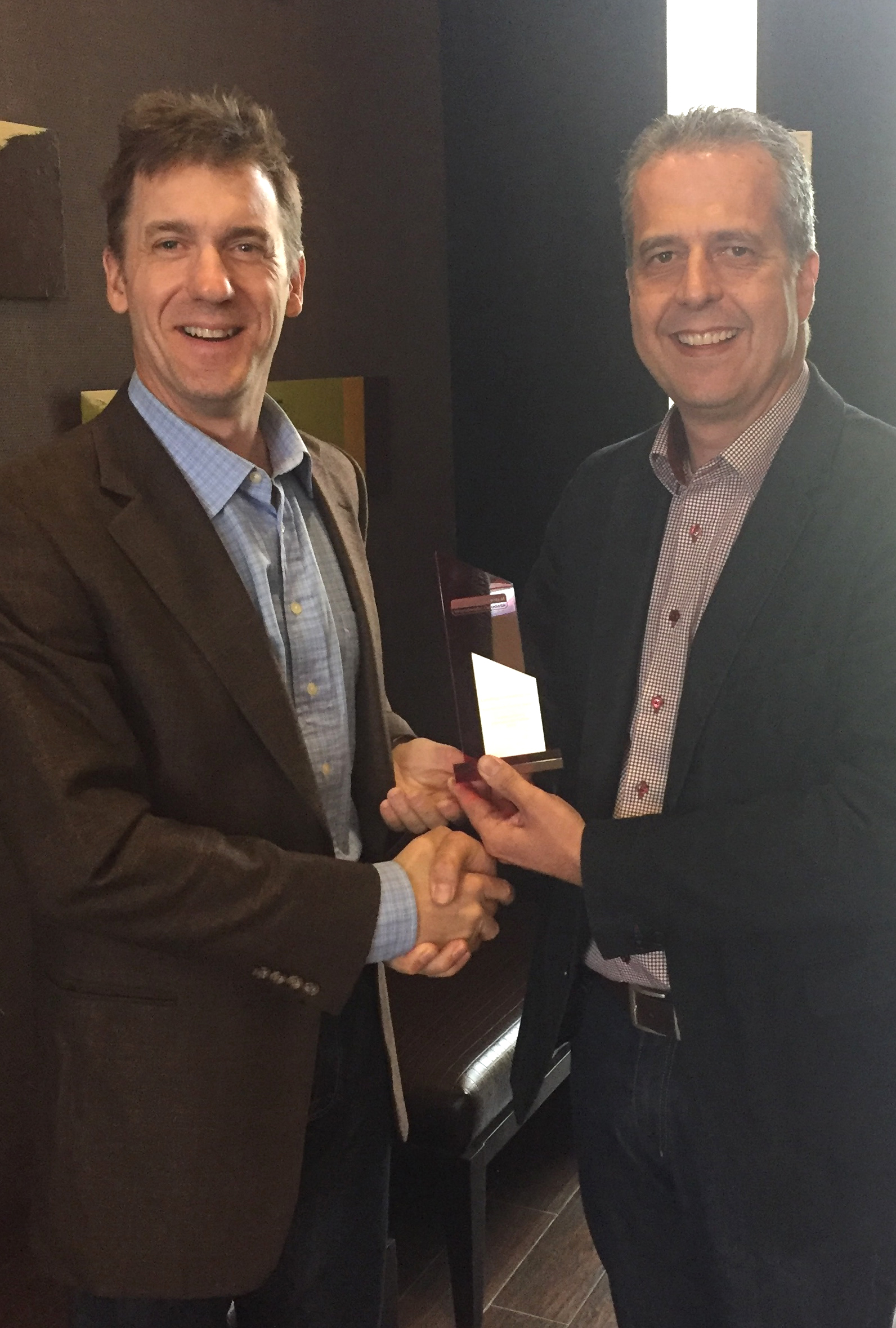 Fastest growing International Partner 2015 - Photo (from left to right): Jim Anderson (LeadDog Founder), Ray Roberts-York (Managing Director, MB-International)