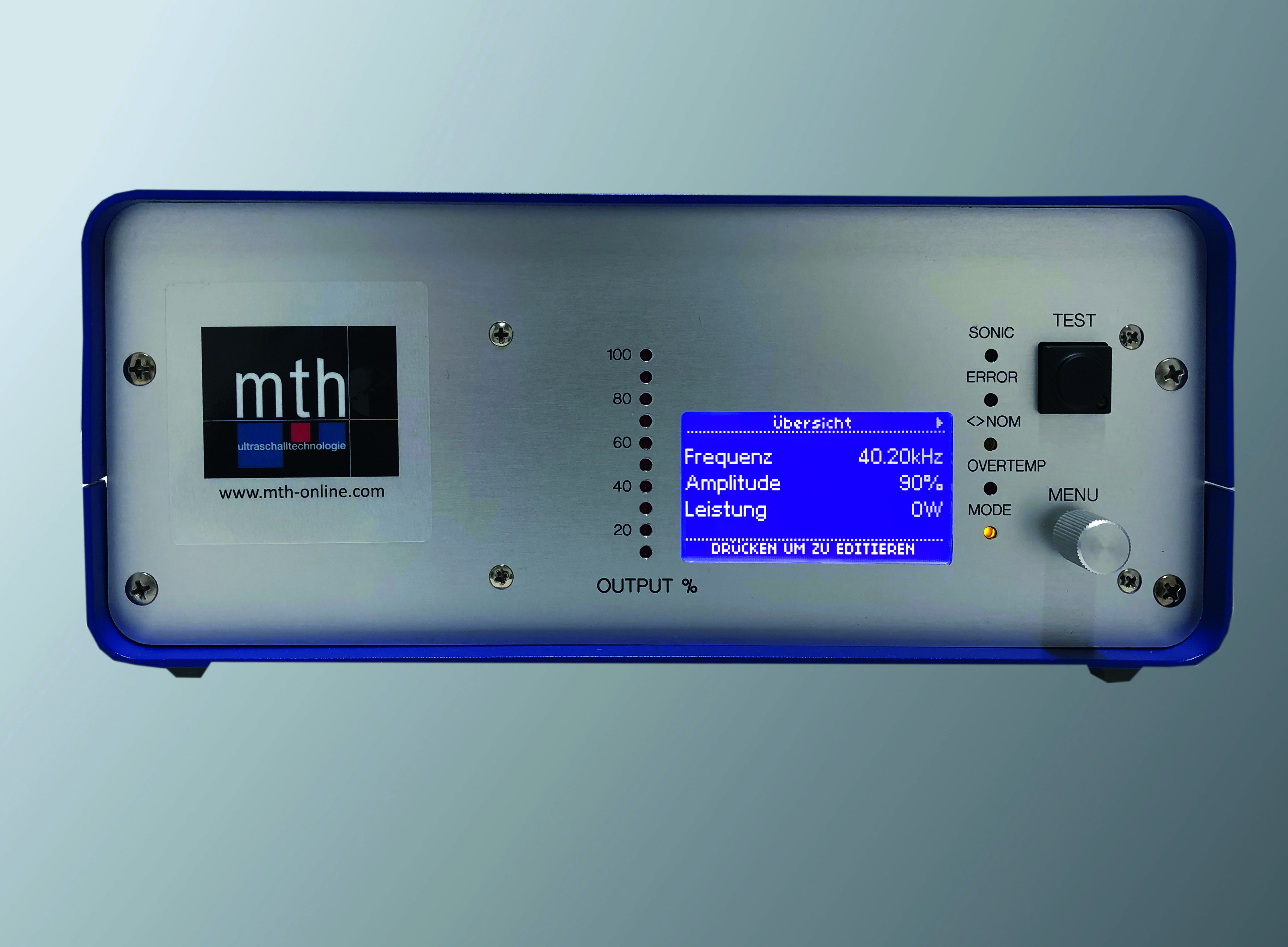 mth - Maschinenbau Technologie Herrde liefert Generatoren mit Digitaltechnik, modernen LCD-Displays, Softstartschaltung für sanftes Anschwingen der Sonotrode und für reproduzierbare Ultraschallschweißergebnisse durch einfache Bedieneroberfläche