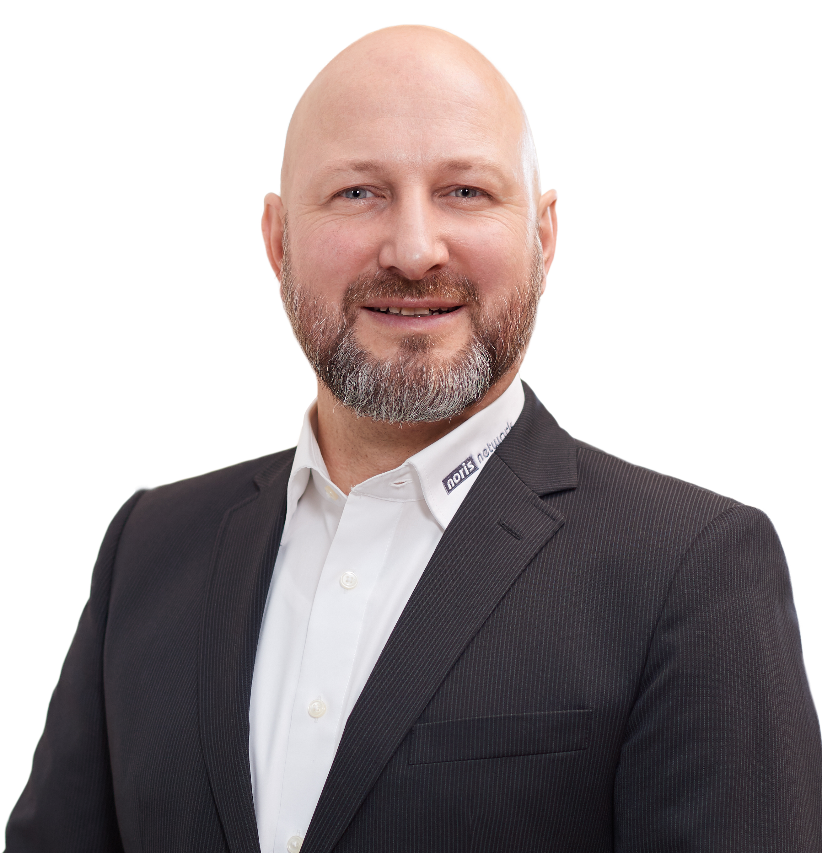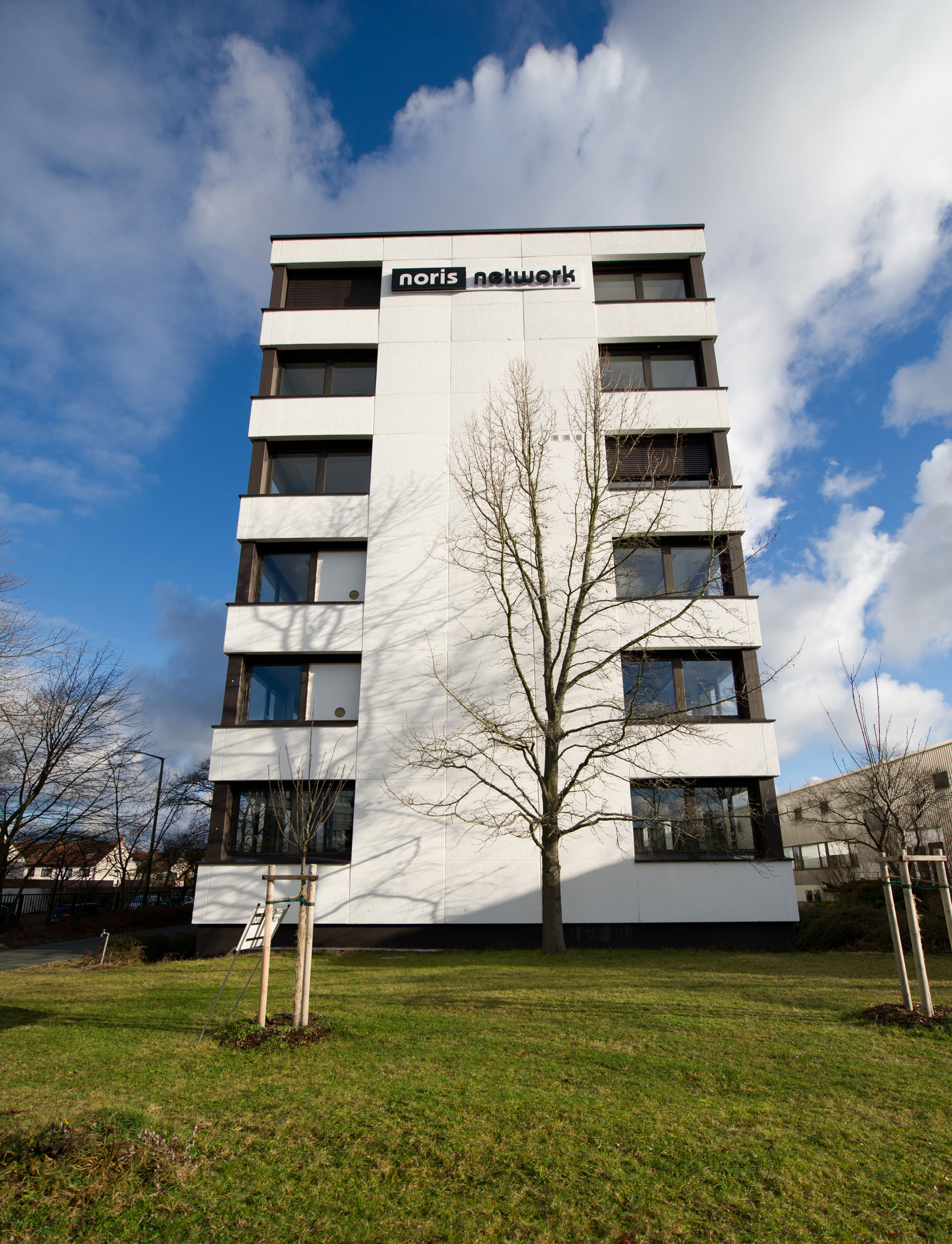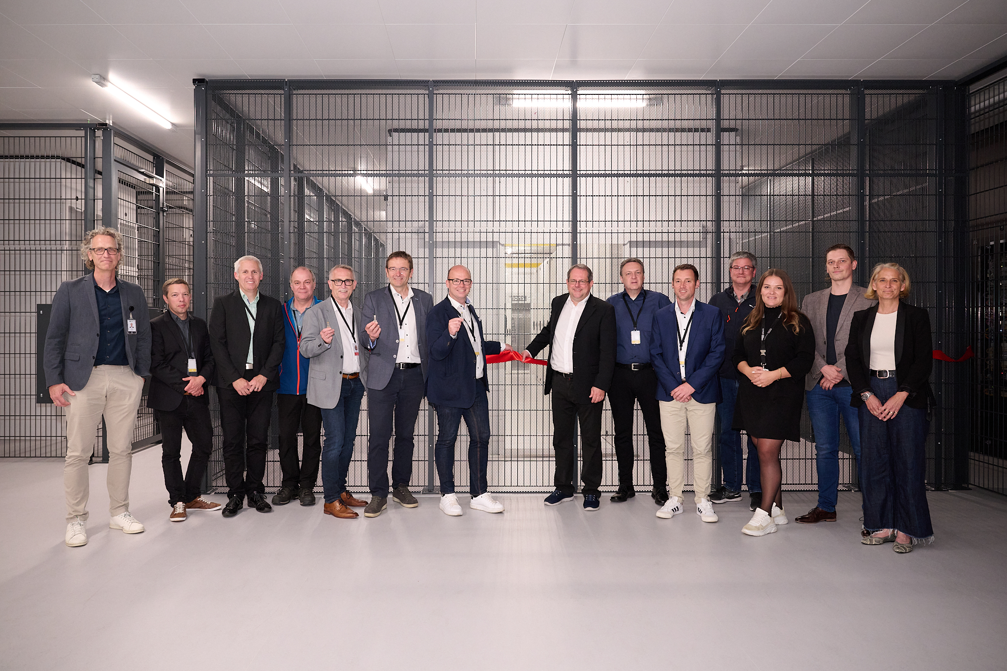 Grundsteinlegung am 12. September 2018 zum zweiten Bauabschnitt des Hochsicherheitsrechenzentrums München Ost von noris network: V. l.: Florian Sippel, Executive Vice President Datacenter, Joachim Astel, Vorstand, Ingo Kraupa, Vorstandsvorsitzender, Jürgen Städing, Vorstand, Stefan Schnabel, Vorsitzender des Aufsichtsrates, Stefan Keller, Executive Vice President Sales Marketing (alle noris network AG), 1. Bürgermeister der Gemeinde Aschheim, Thomas Glashauser (2. v. r.), Andrea Lengenfeld, Aufs