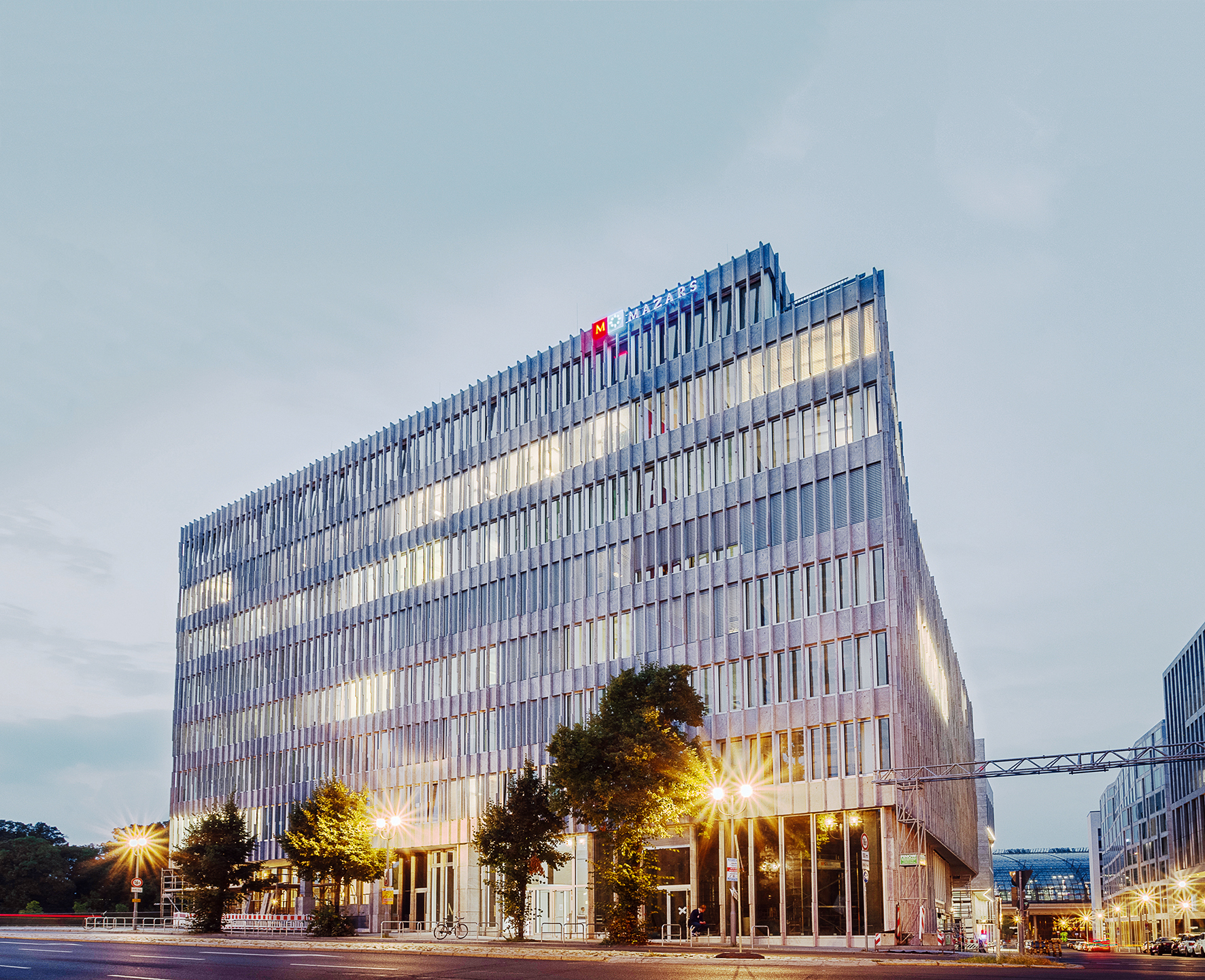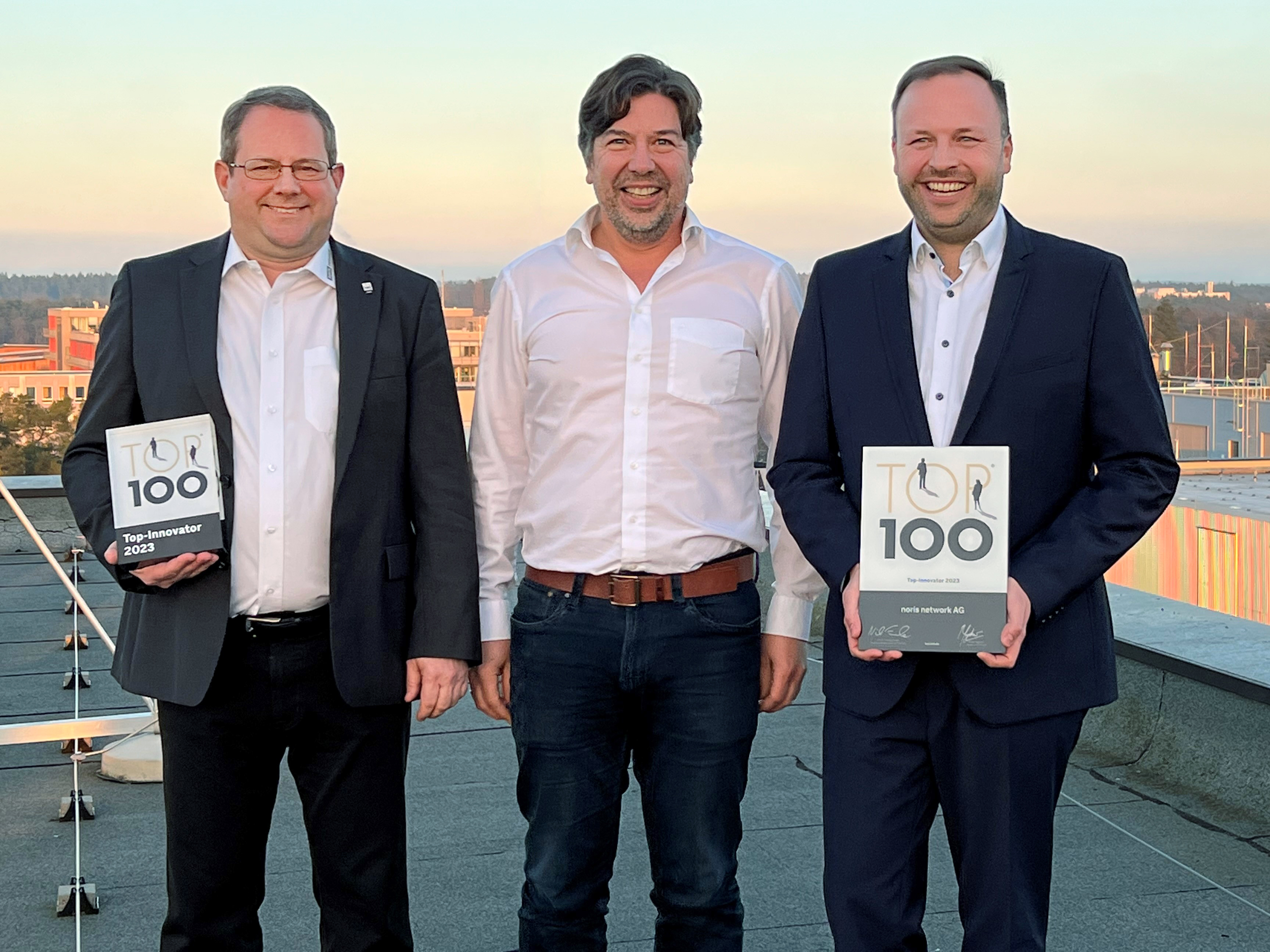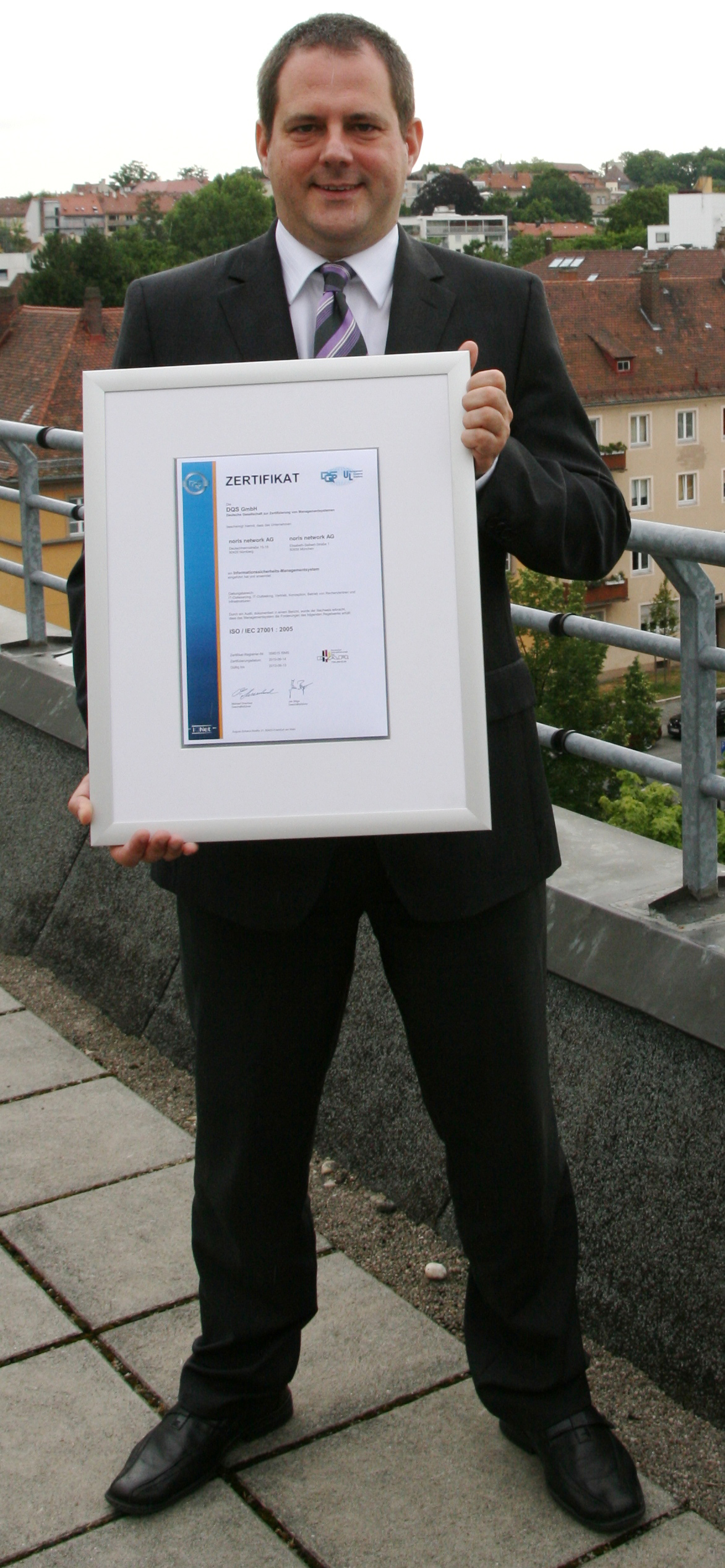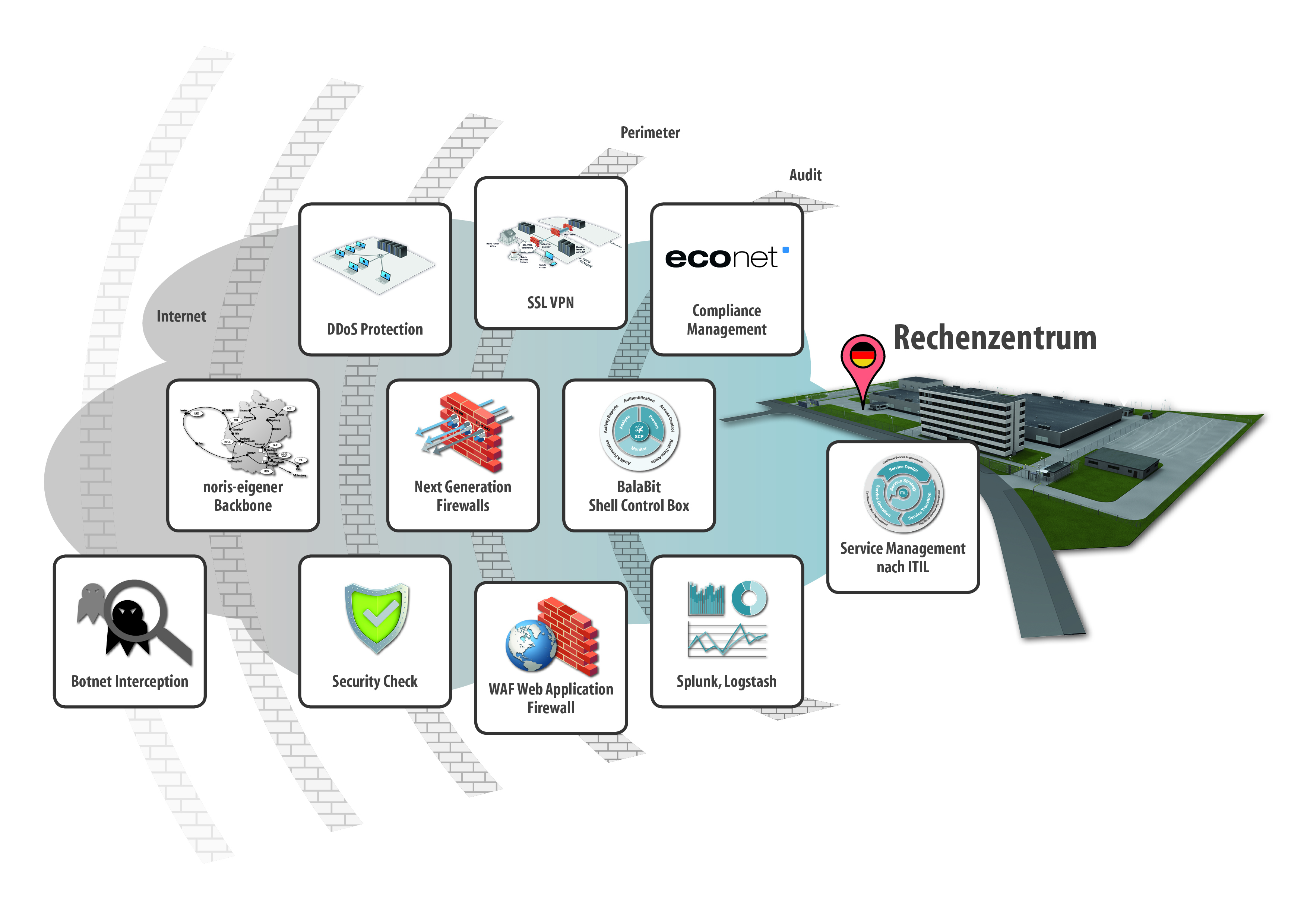 Grundsteinlegung am 12. September 2018 zum zweiten Bauabschnitt des Hochsicherheitsrechenzentrums München Ost von noris network: V. l.: Florian Sippel, Executive Vice President Datacenter, Joachim Astel, Vorstand, Ingo Kraupa, Vorstandsvorsitzender, Jürgen Städing, Vorstand, Stefan Schnabel, Vorsitzender des Aufsichtsrates, Stefan Keller, Executive Vice President Sales Marketing (alle noris network AG), 1. Bürgermeister der Gemeinde Aschheim, Thomas Glashauser (2. v. r.), Andrea Lengenfeld, Aufs