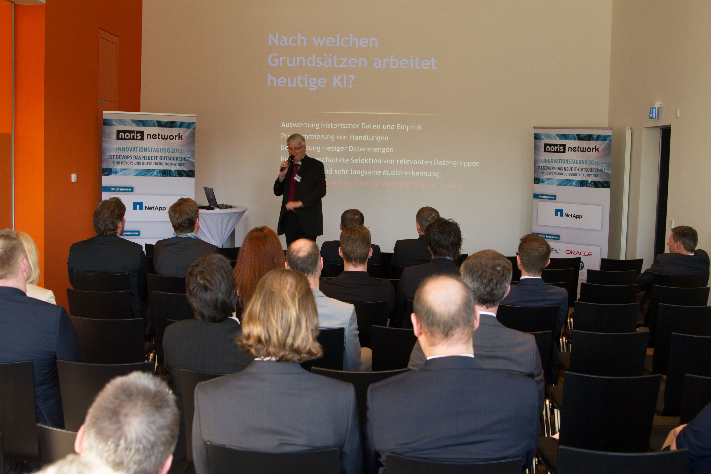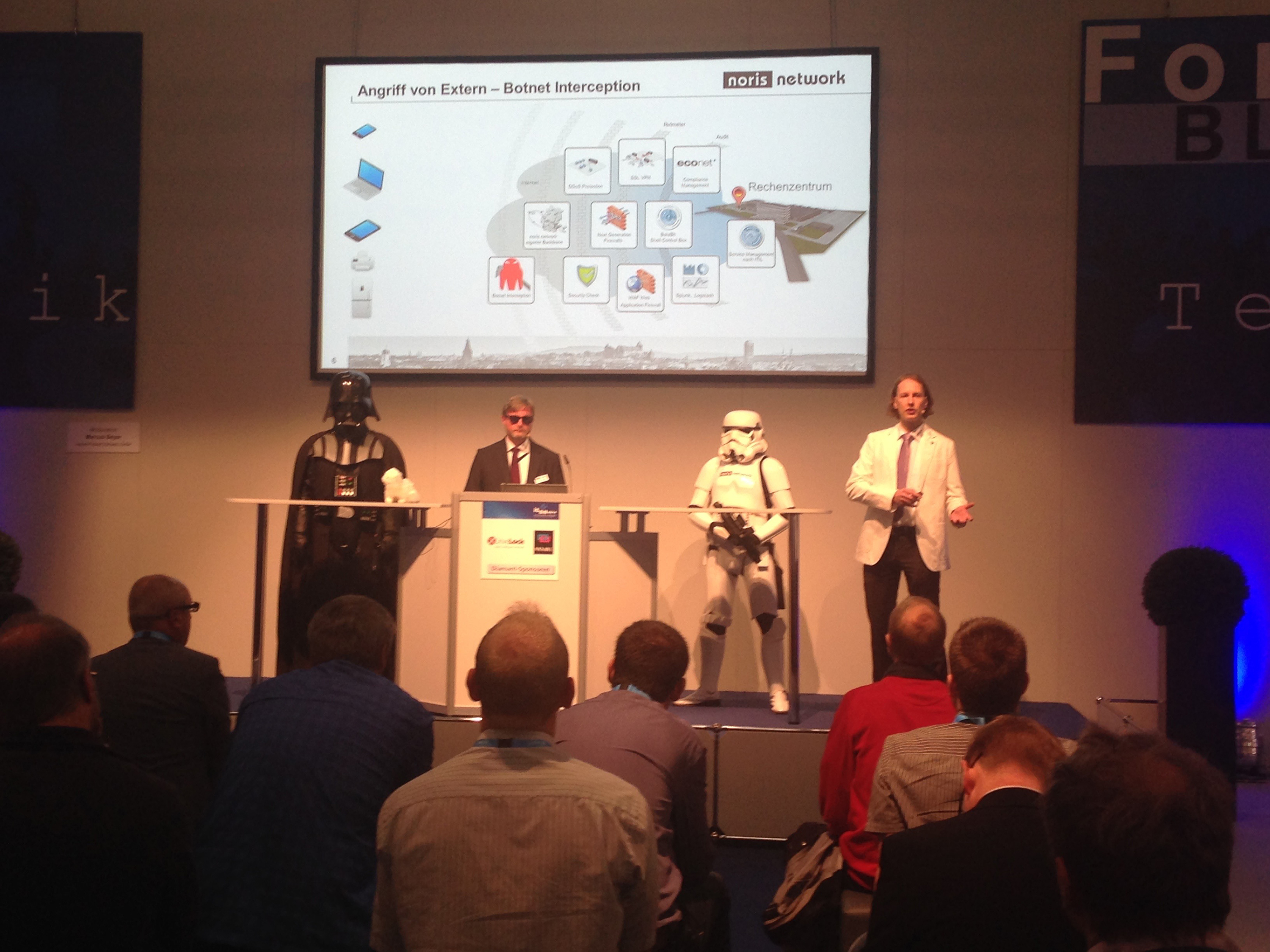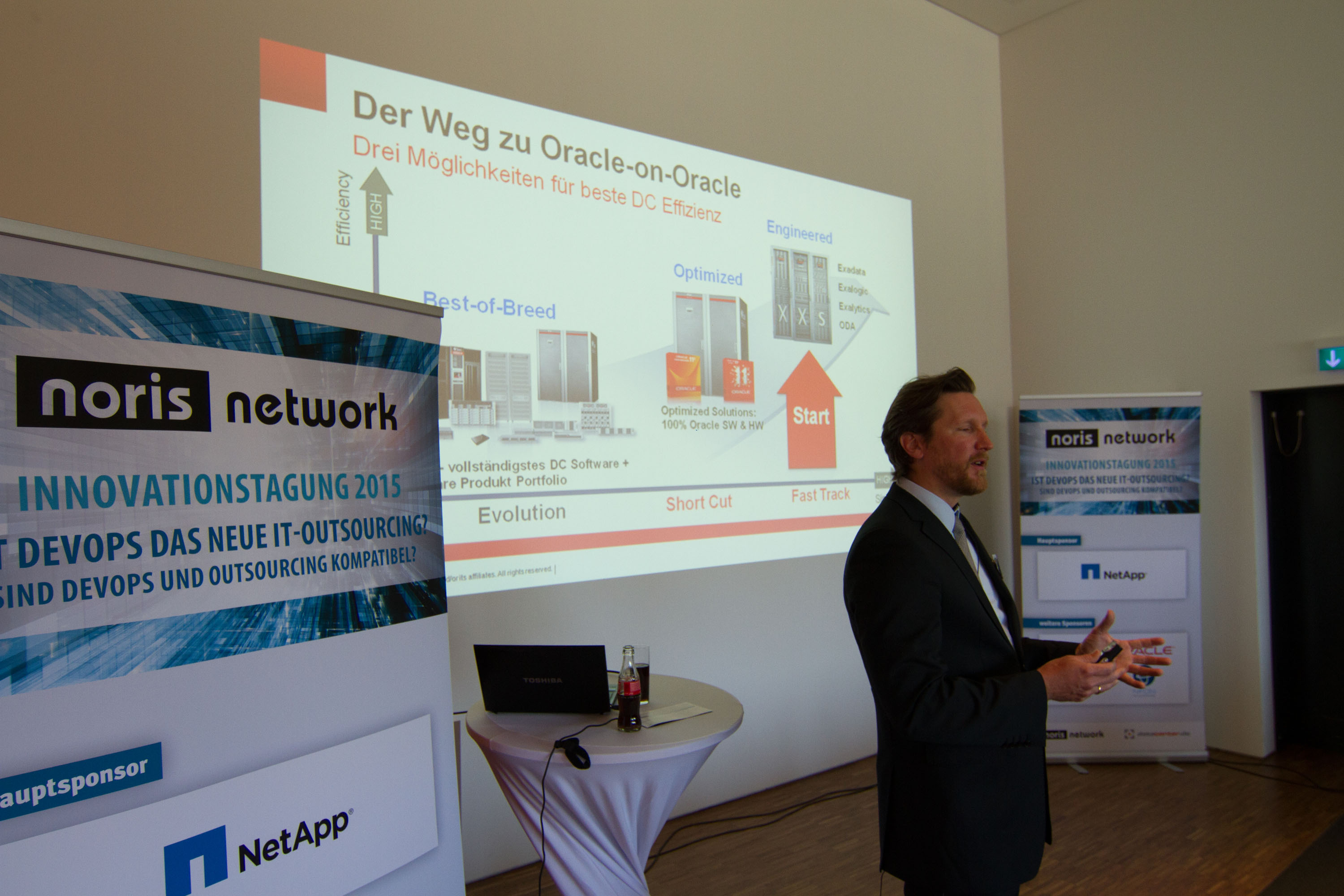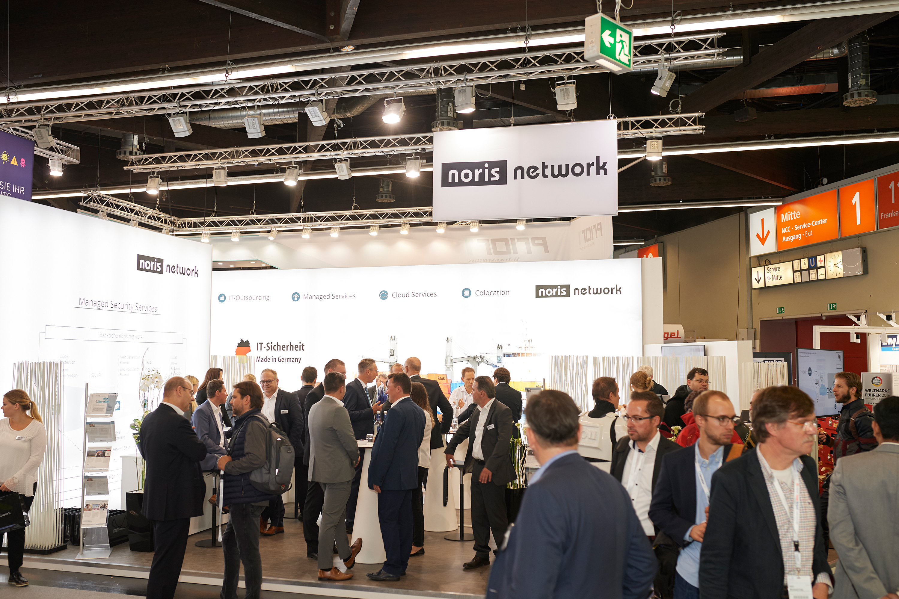 Podiumsdiskussion mit Marco Pfuhl, Director, Cloud Provider Business CEMEA, VMware Global Inc, Sonja Pierer, Business Consumption Director, Intel Germany Services GmbH, Florian Sippel, COO, noris network AG, Ingo Kraupa, CEO, noris network AG mit Moderator Tom Meiler (v. l.)
