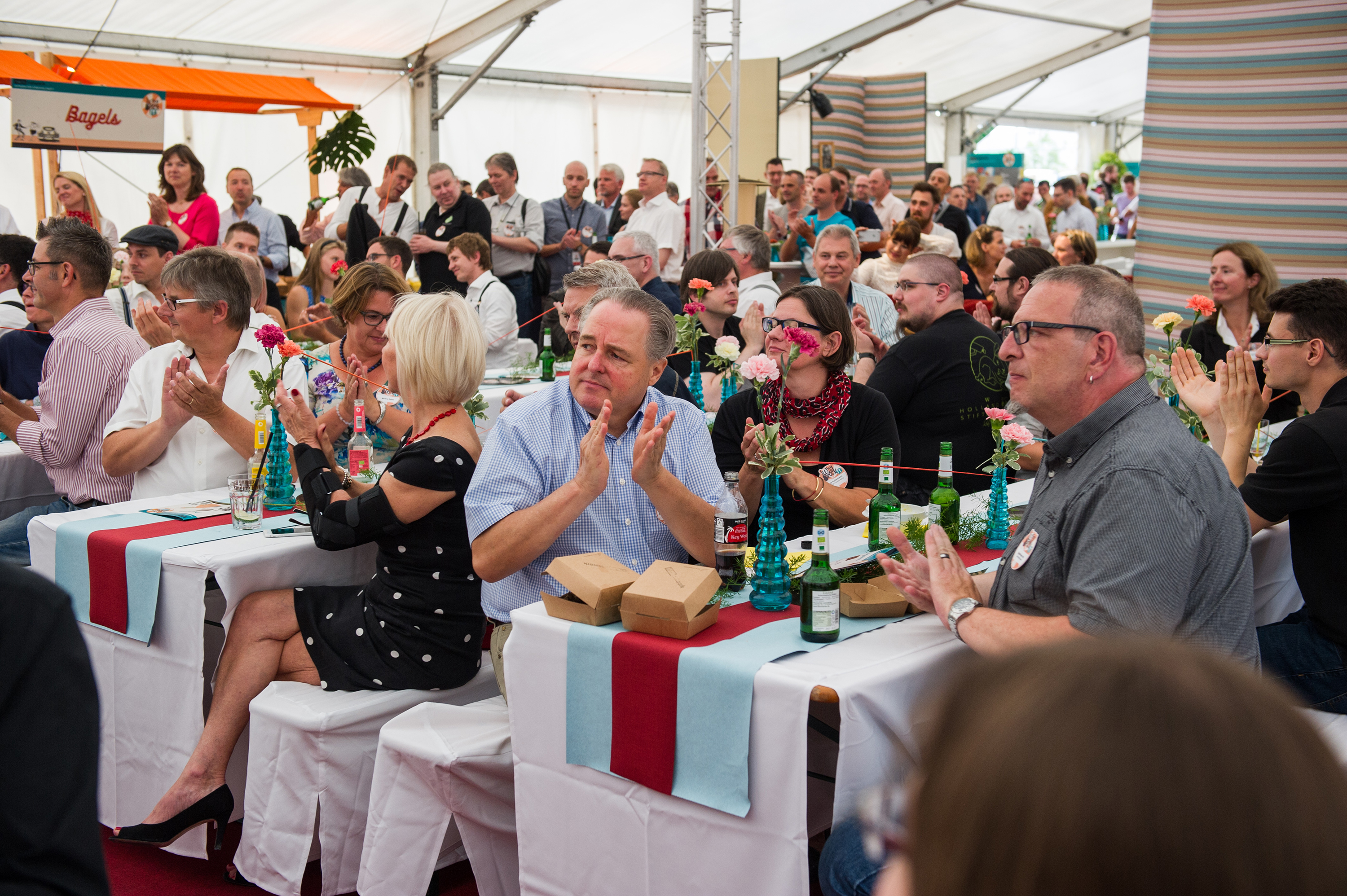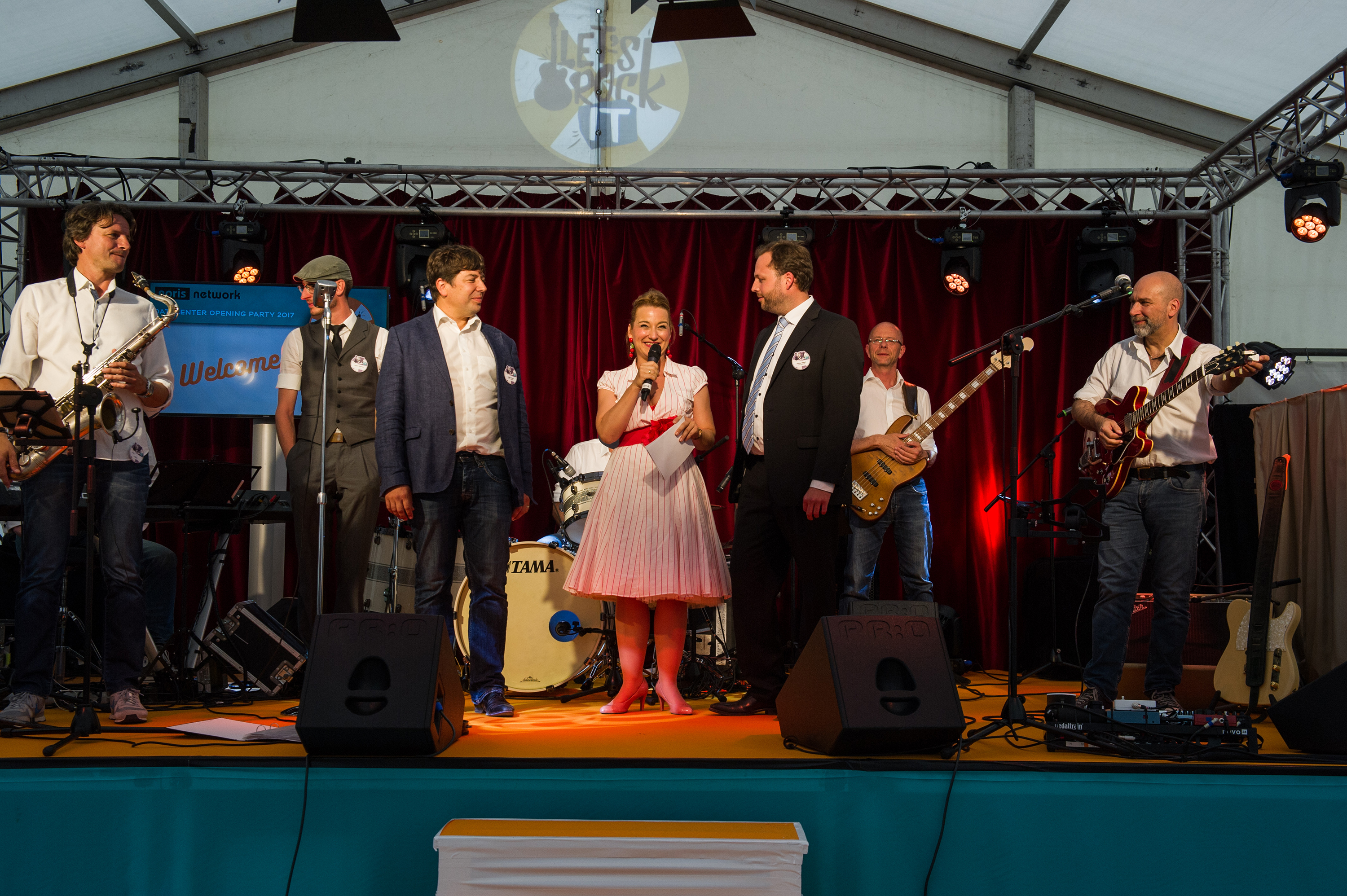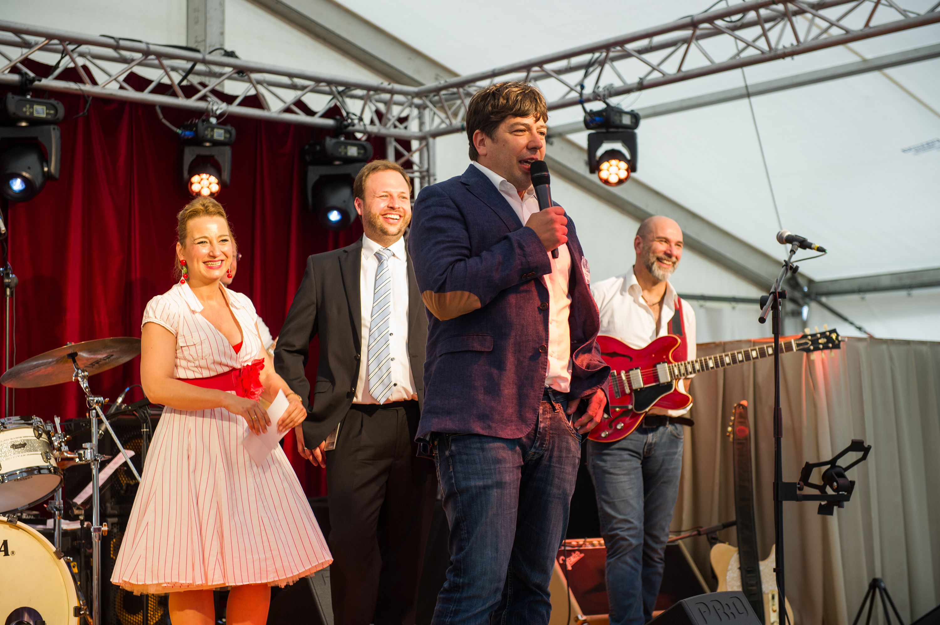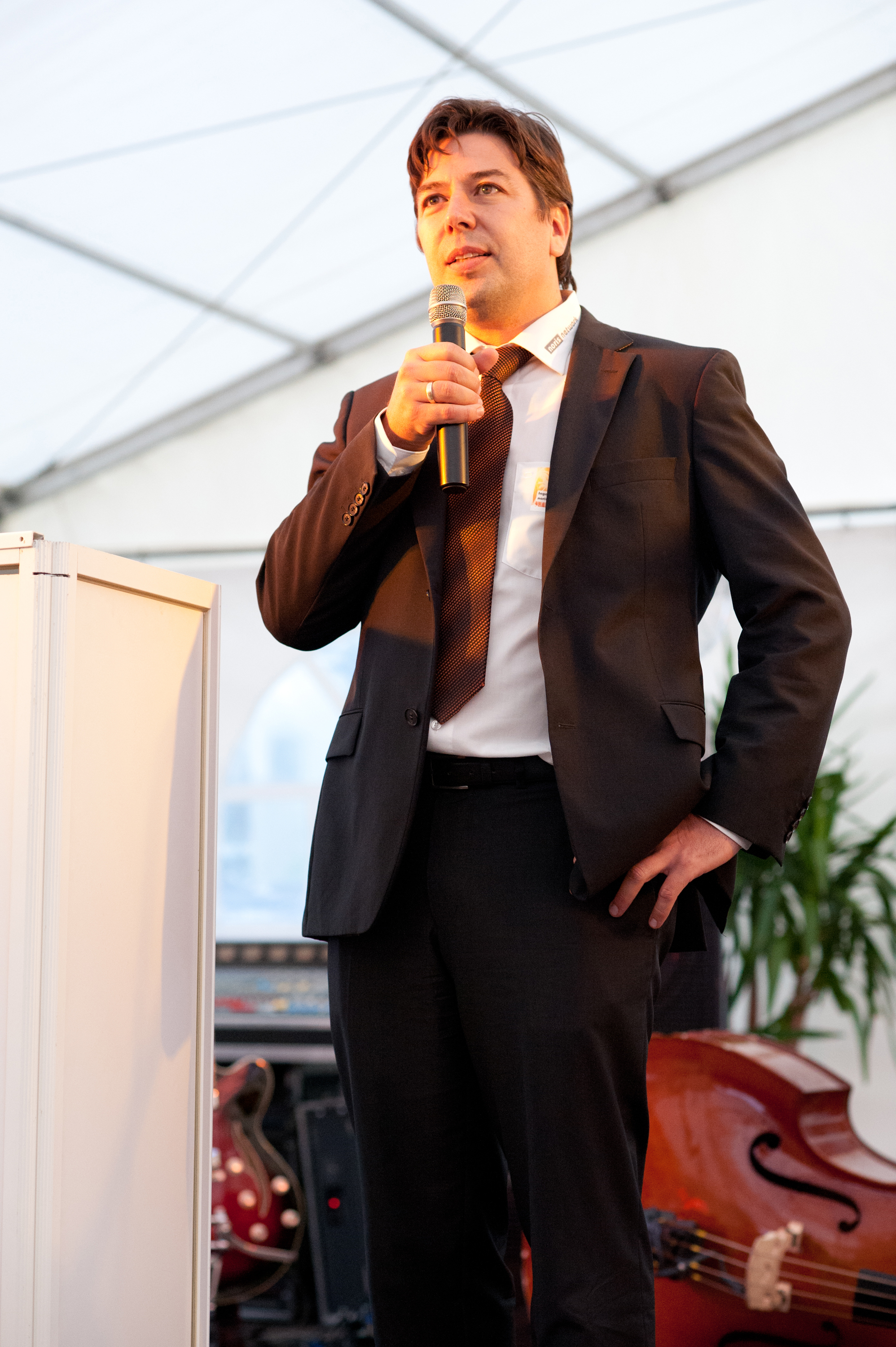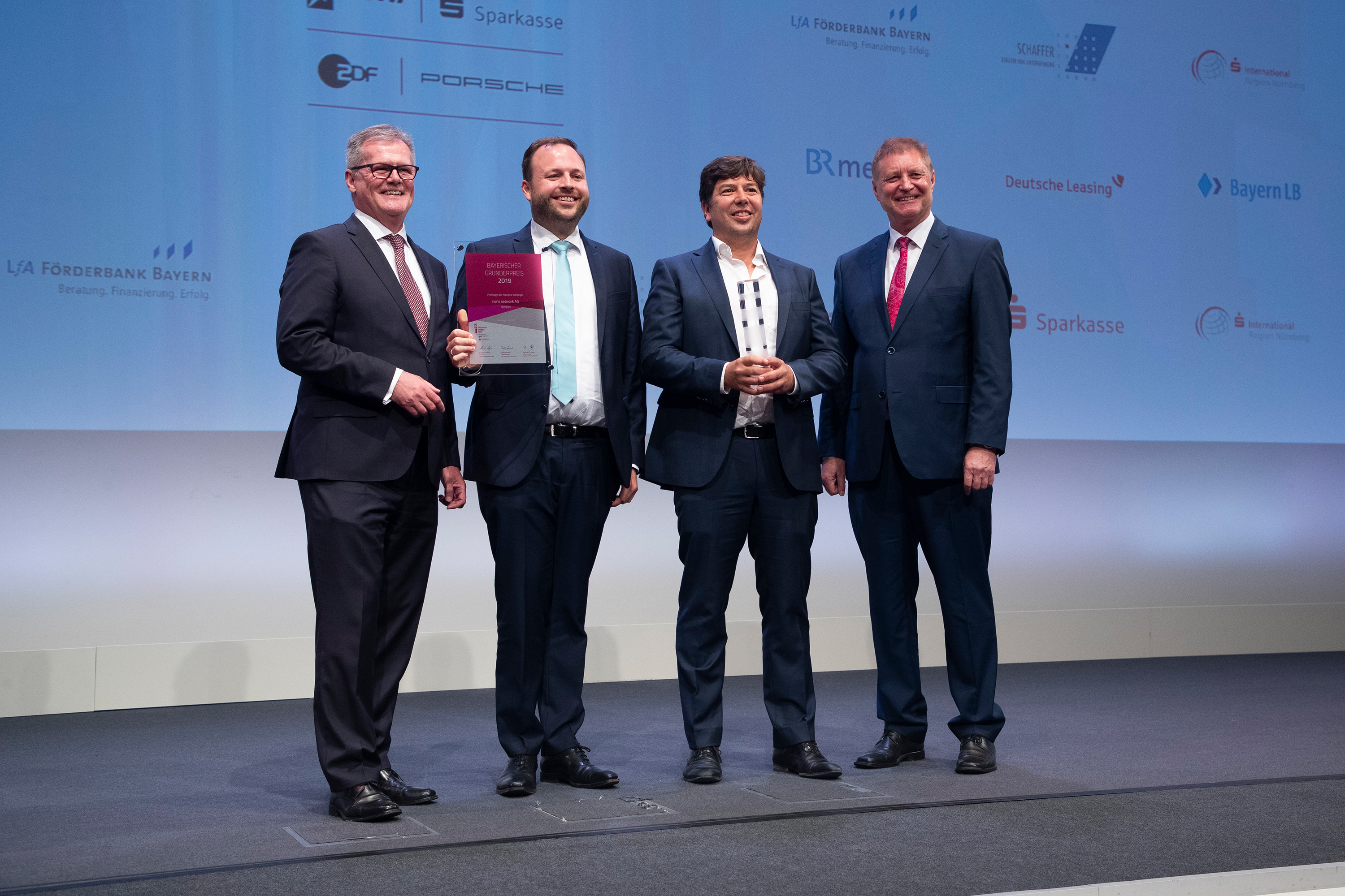 Freuen sich über das große Interesse: Florian Sippel, COO, noris network AG, Ingo Kraupa, CEO, noris network AG, Sonja Pierer, Business Consumption Director, Intel Germany Services GmbH, Marco Pfuhl, Director, Cloud Provider Business CEMEA, VMware Global Inc. mit Moderator Tom Meiler (v. l.)