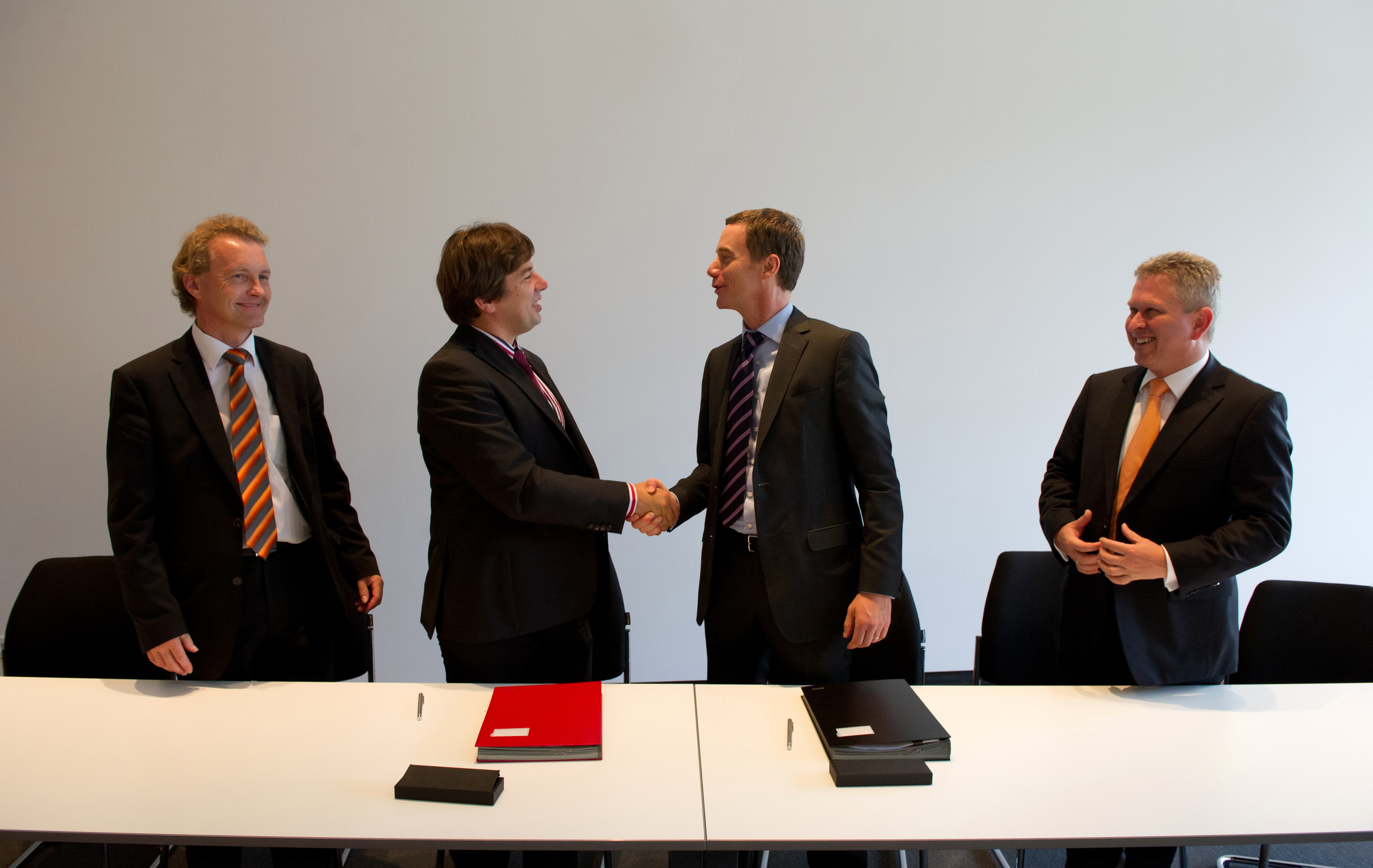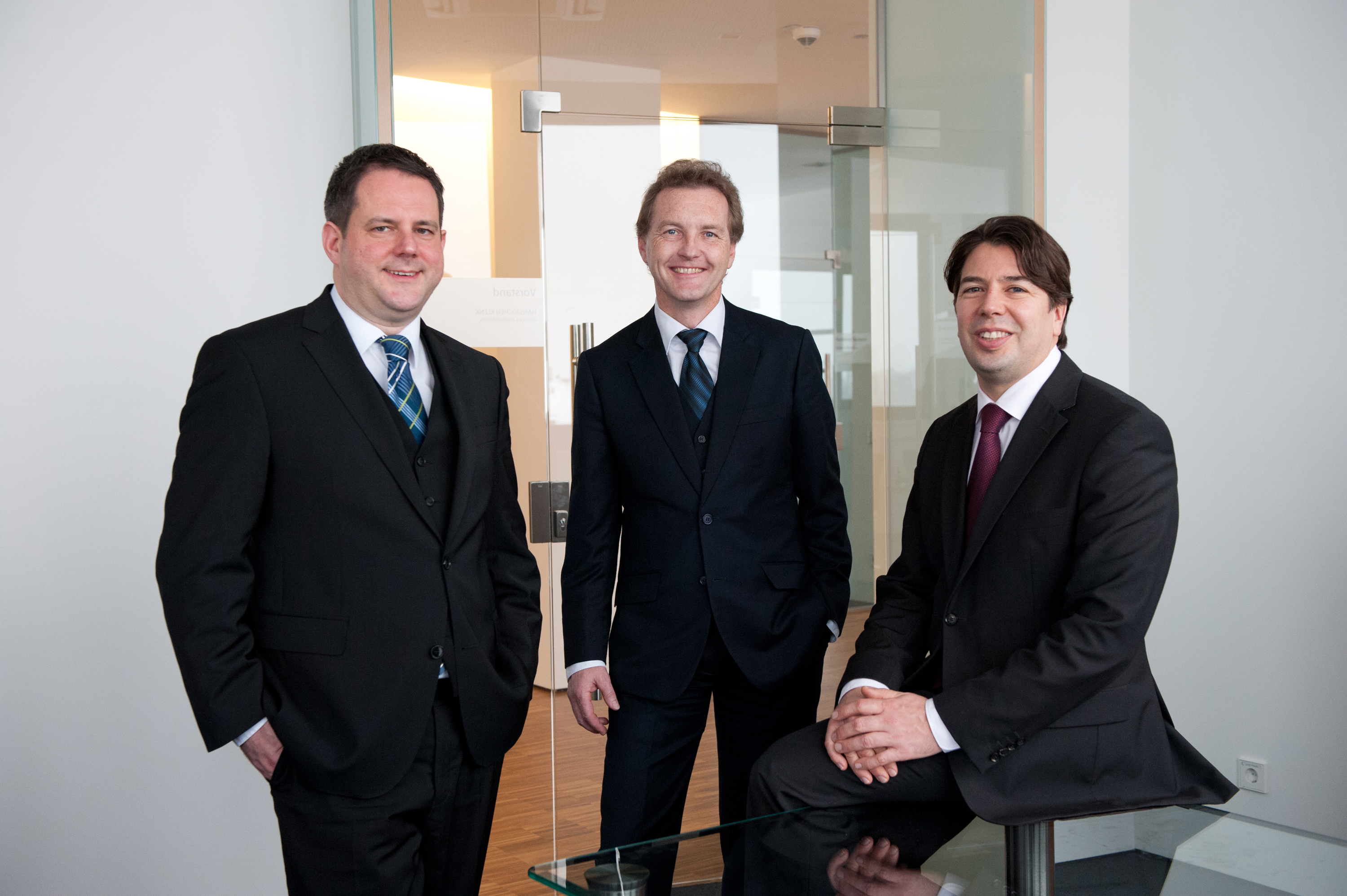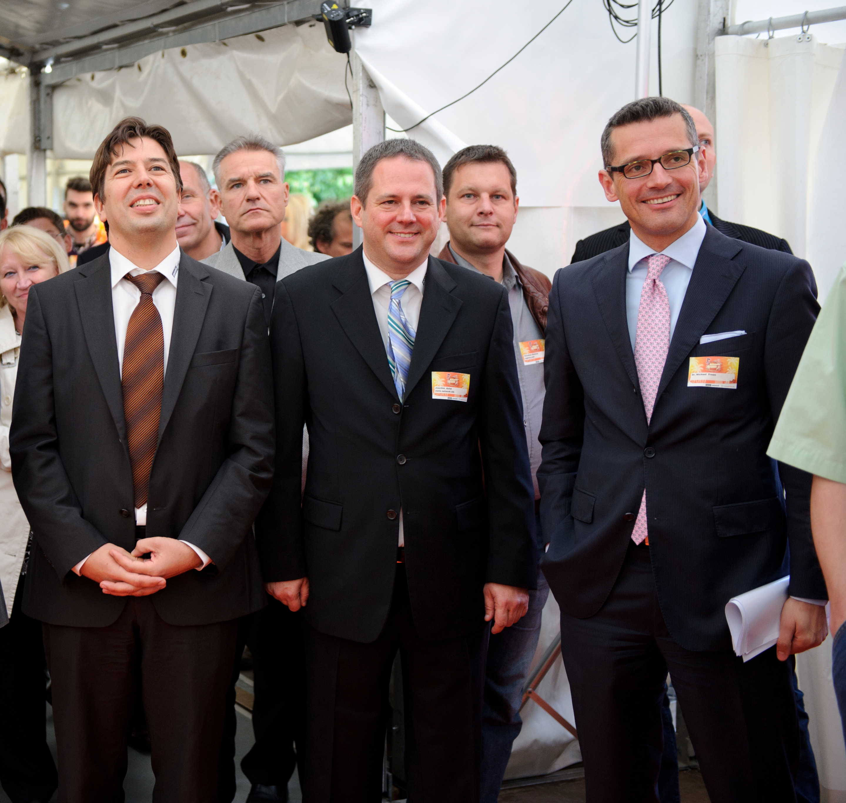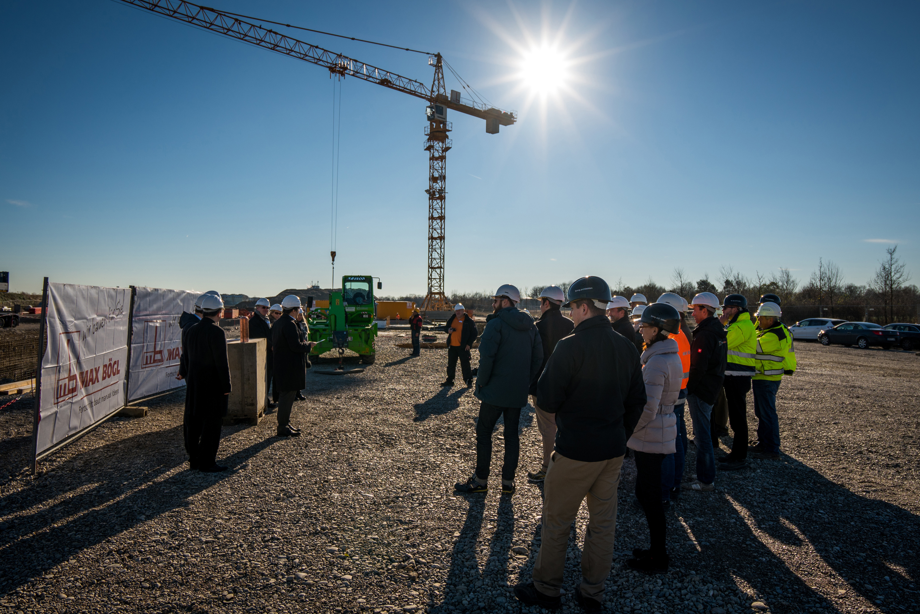 Bei der Grundsteinlegung des neuen Rechenzentrums von noris network am 24.11.2015 in Aschheim V. l. n r.: Joachim Astel, Vorstand der noris network AG, Florian Sippel, Projektleiter Rechenzentren bei der noris network AG, Ingo Kraupa, Vorstandsvorsitzender der noris network AG, Thomas Glashauser, 1. Bürgermeister Aschheim, Stefan Schnabel, Aufsichtsrat noris network AG, Andrea Lengenfeld, Aufsichtsrätin noris network AG, Kirsten Meier, Marketing bei noris network AG / Bildquelle: MOKATI Fotos und Film OHG