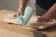 Nach dem vollständigen Trocknen glätten Sie die durch das Wässern aufgestellten Holzfasern mit feinkörnigem Schleifschwamm oder Schleifpapier (z. B. P220). Arbeiten Sie dabei in Faserrichtung und mit leichtem Druck.