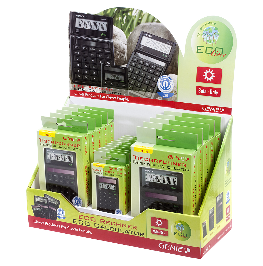 Genie ECO-Taschenrechner Produktfamilie im Aufsteller/GO Europe