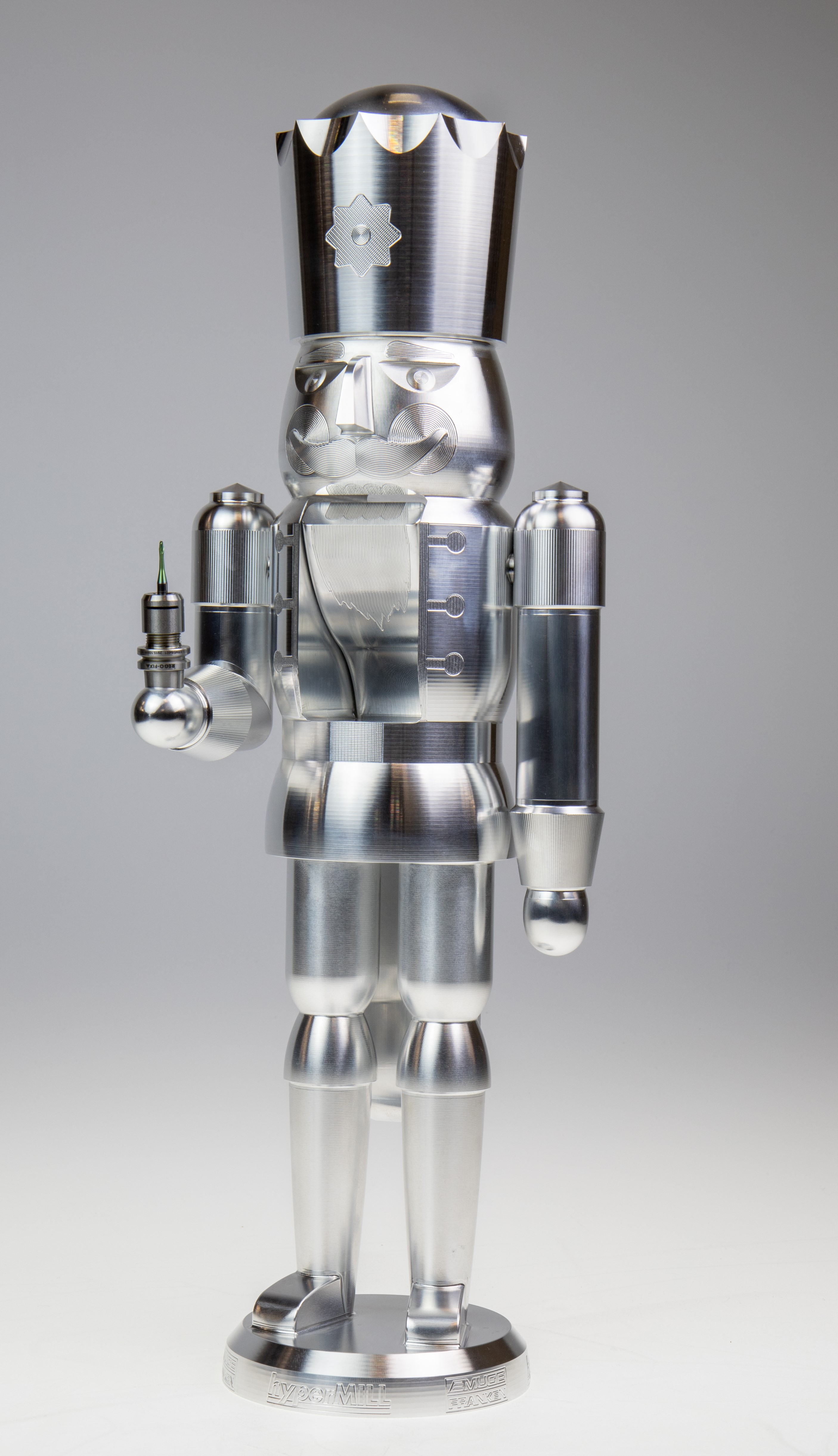 Tradition trifft Innovation: der originale Holznussknacker der Seiffener Volkskunst eG und das gefräste Pendant aus Aluminium, Bildquelle: OPEN MIND