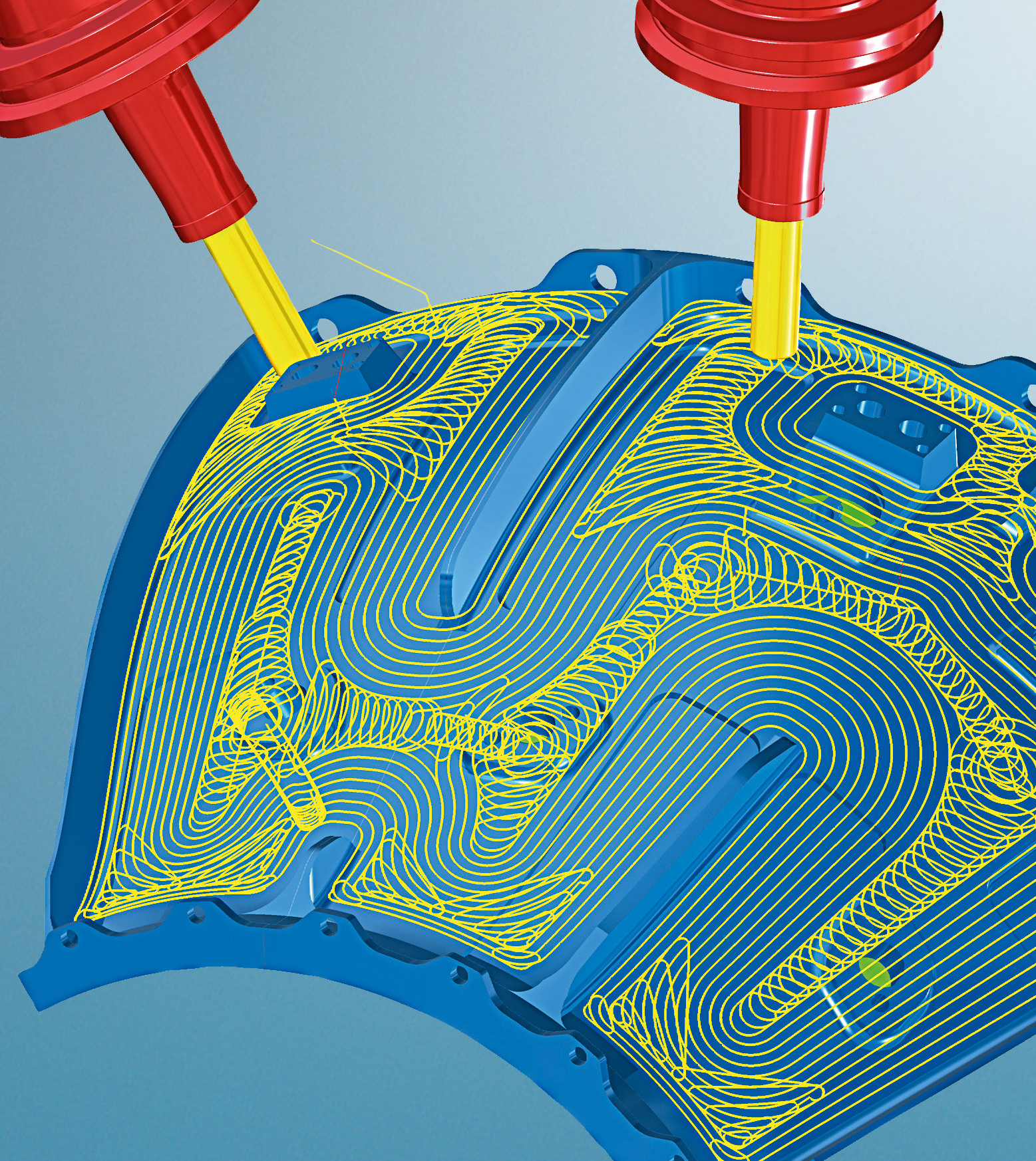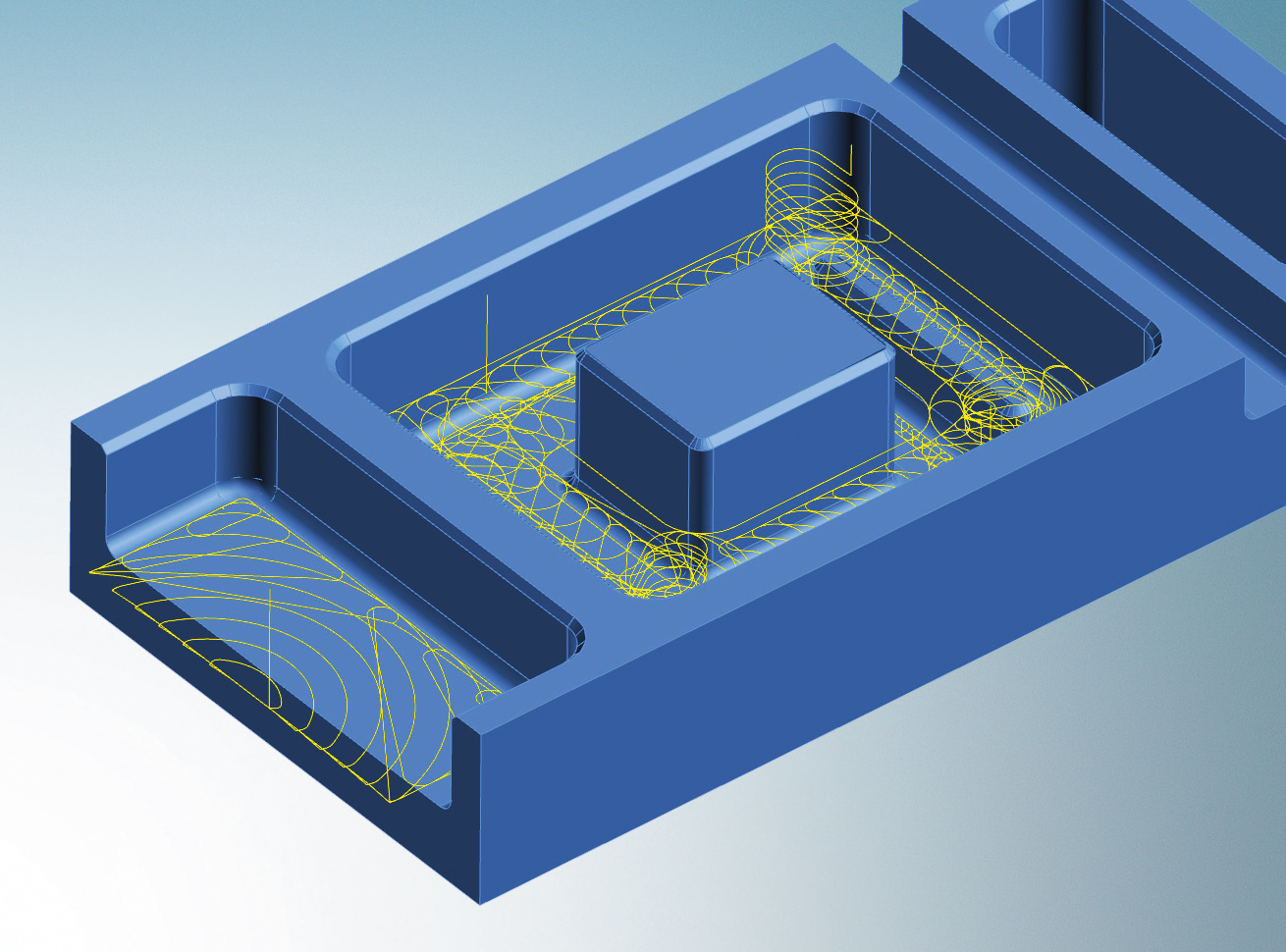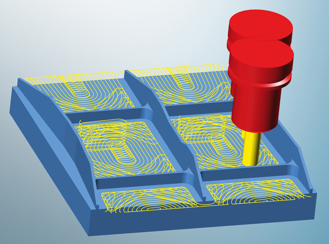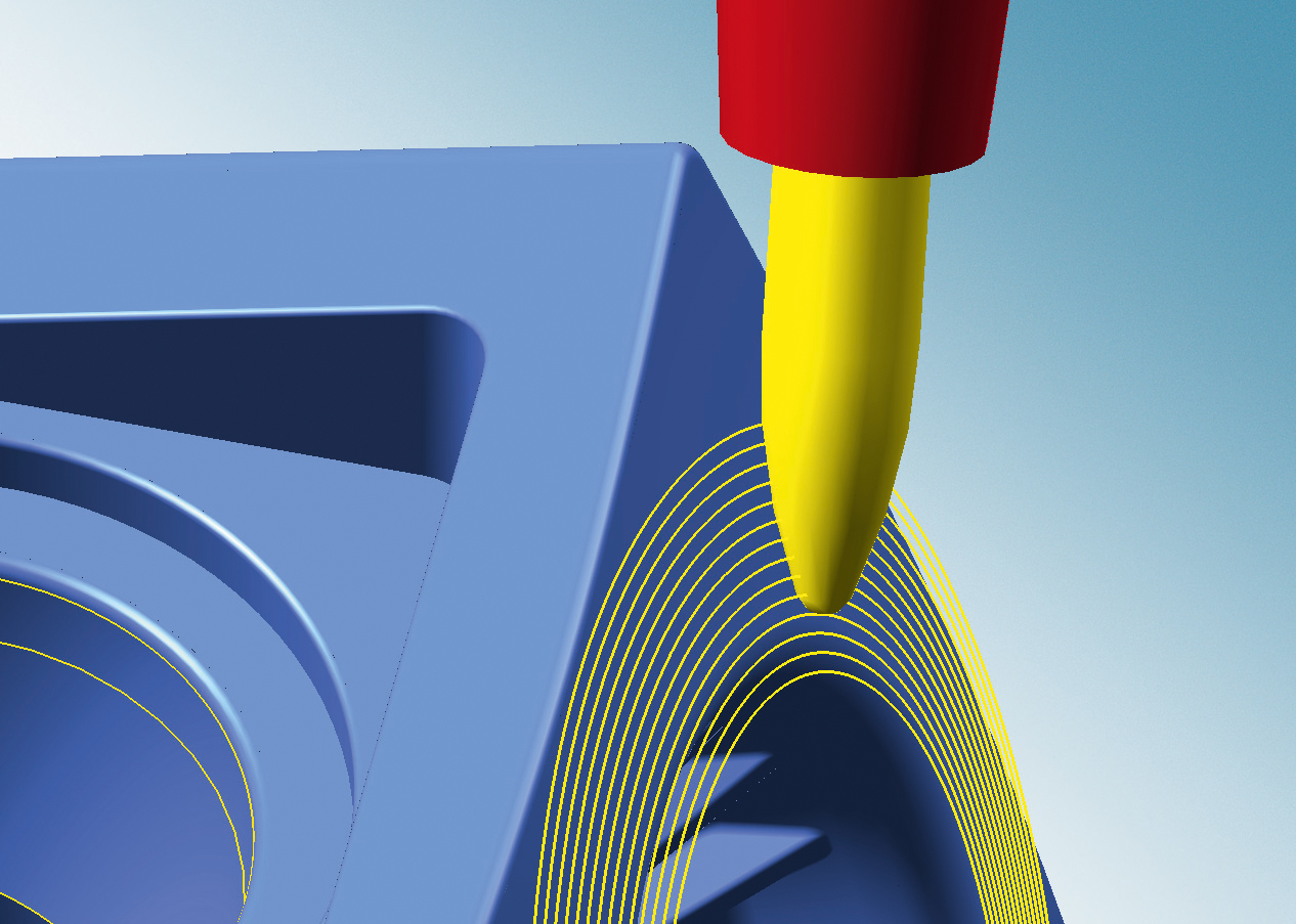 Bei der 3D- und 5-Achs-Bearbeitung (Bild) sorgen neue Algorithmen zur Restmaterialerkennung für eine automatische und vollständige Erfassung aller Restmaterialbereiche.