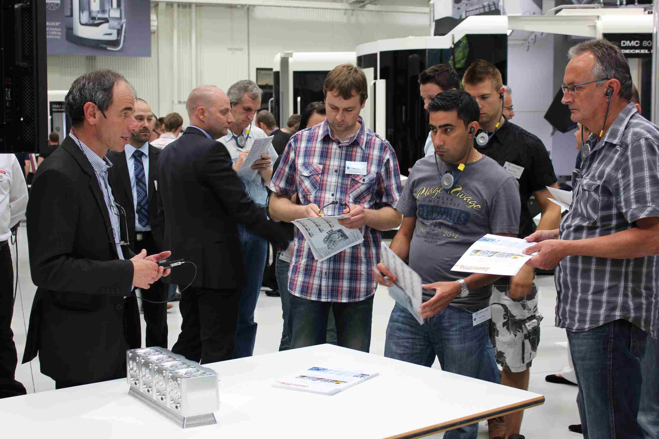 Die Live-Bearbeitung auf der Mazak-Maschine regte zu Gesprächen über die kombinierte Dreh-Fräsbearbeitung an.