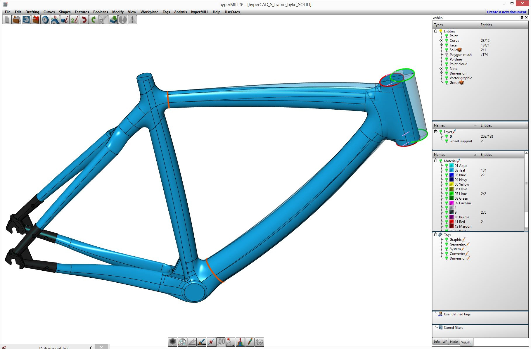 Eine der größten Stärken von hyperCAD®: das Arbeiten mit Kurven-, Volumen- und Flächendaten in einer Umgebung