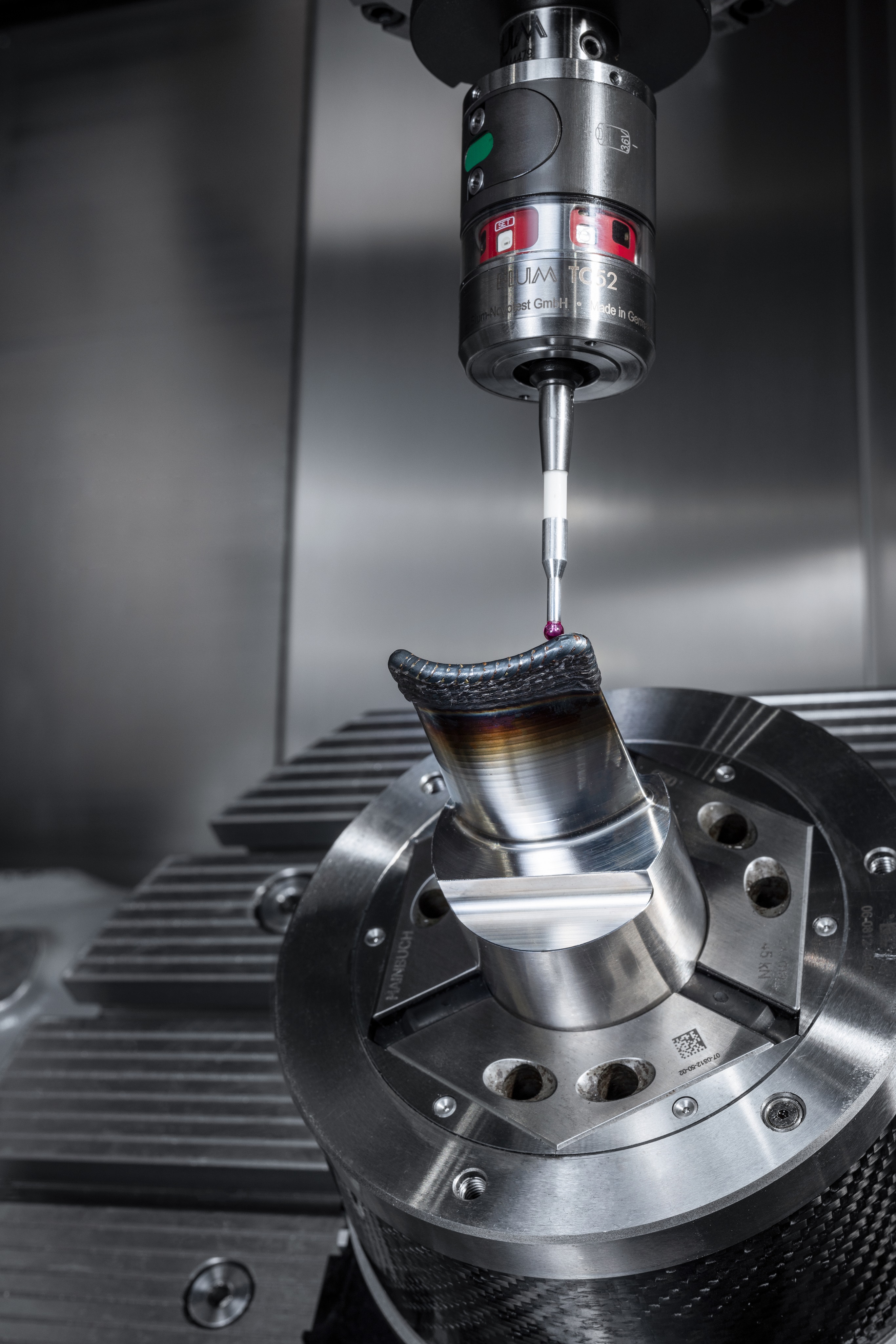 Messtaster prüft nach hyperMILL-Programmierung den additiven Materialauftrag.