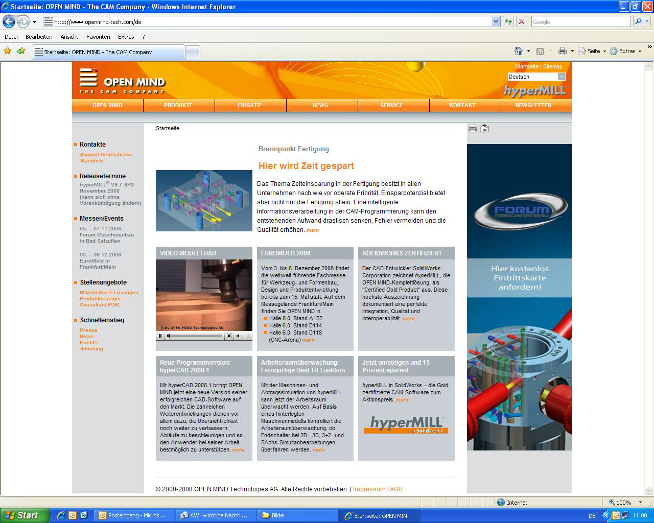 (pressebox) (Wessling, 04.11.2008) Neues Konzept, neue Struktur, neues Design: OPEN MIND Technologies AG hat ihren Internetauftritt umfassend überarbeitet. Den Webuser erwarten jetzt ausführliche Produktinformationen, aktuelle Meldungen, Anwenderberichte und Service rund um das Thema CAM für die CNC-Fräsbearbeitung.