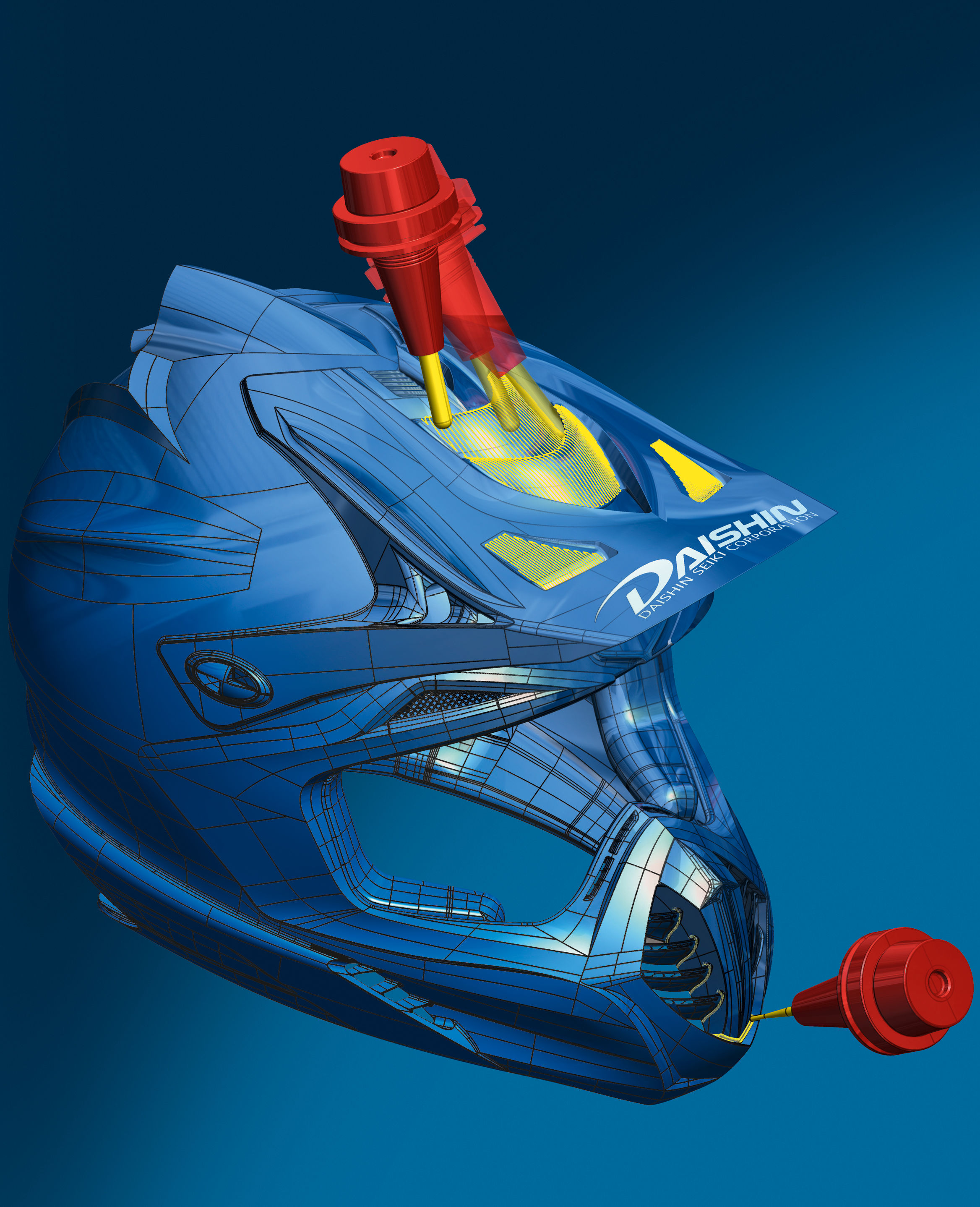 Großes Interesse galt auch zwei Ausstellungsstücken, die das Leistungspotenzial von hyperMILL® eindrucksvoll demonstrieren: ein Motorradhelm, der vor kurzem eine Goldmedaille beim Mori-Seiki-Wettbewerb "Cutting Dream Contest" erhielt. Programmiert und gefräst wurde der Motorradhelm von dem japanischen Unternehmen Daishin Seiki Coorperation. Zum anderen stellte die Wolpert Gruppe aus Bretzfeld-Schwabbach einen Stoßfänger für die EuroMold zur Verfügung.
