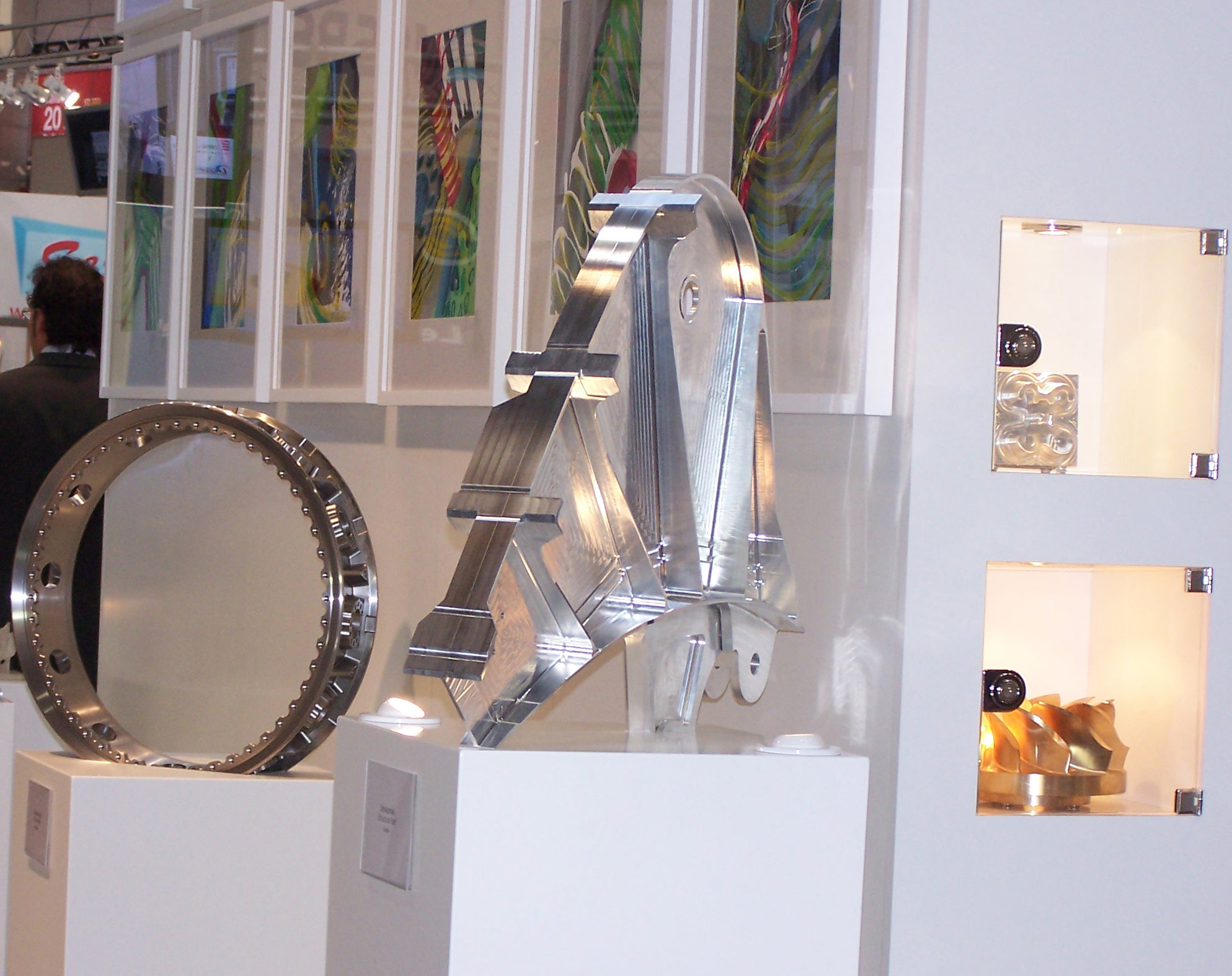 Eine Galerie mit Werkstücken rundete den OPEN MIND Messeauftritt ab und gab Besuchern einen guten Eindruck von den Möglichkeiten, die die Bearbeitungsstrategien von hyperMILL® eröffnen.