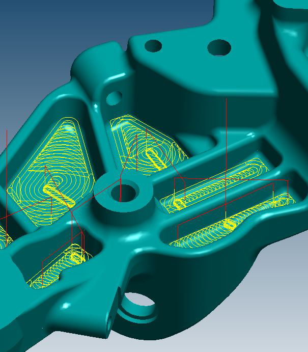 Dank der Funktion „Intermediate Steps“ können zudem Zwischenschritte definiert werden, die eine bessere Bearbeitung flacher Übergänge und schräger Wände ermöglicht. Dabei wird nicht nur ein Konturschnitt erzeugt, sondern ganze Ebenen oder Taschen bearbeitet, die durch die festgelegte Hauptschnittaufteilung nicht bearbeitet wurden. Diese Herangehensweise macht eine weg- und zeitoptimierte Bearbeitung möglich. Die Schnittbreite des Werkzeugs wird besser genutzt und Werkzeugstandzeiten erhöht.