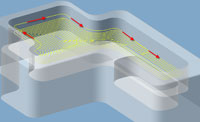 Pocket milling has been improved in the 3D roughing area. As a result, for the machining of pockets, the ramp is moved continuously in one direction. The pocket is then cleared from the outside in. Advantage: Thanks to the continuous inward movement of the ramp, the tool path is optimised, and zig-zag movements are avoided.