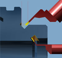 For turning operations, hyperMILL® functionality has been extended to include inclined grooving. This is why offset tools can now also be used. The tool database has therefore been expanded to include these recessing tools.