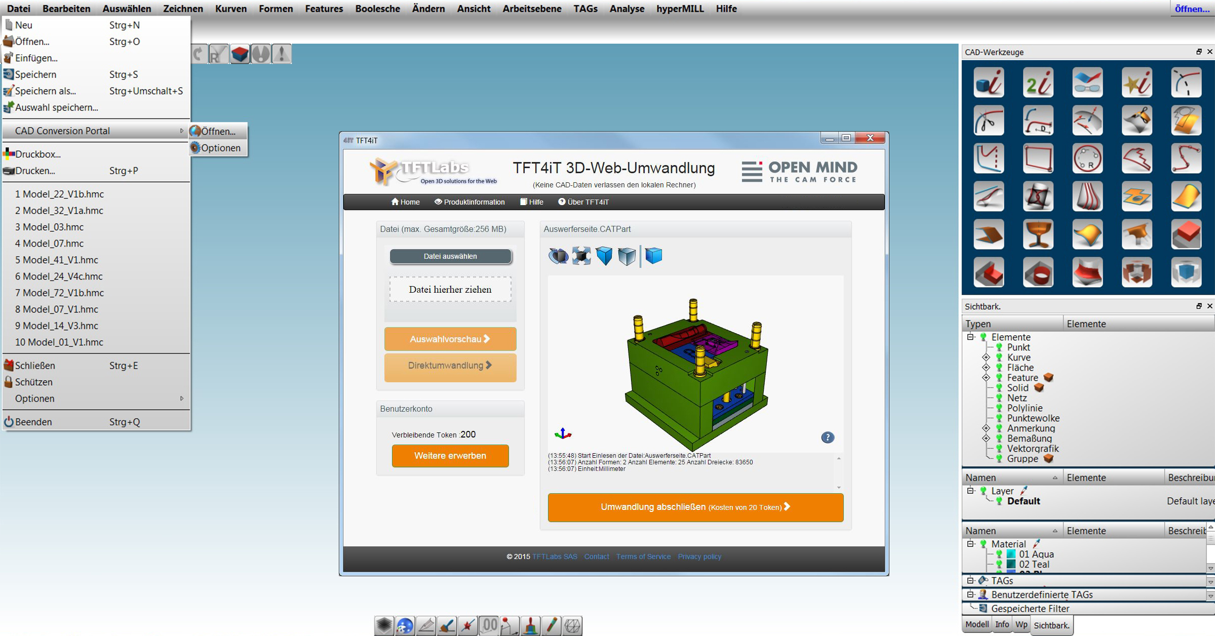 (pressebox) (Wessling, 20.05.2015) Die OPEN MIND Technologies AG hat in Kooperation mit dem französischen Unternehmen TFTLabs SAS eine CAD-Konvertierungsschnittstelle entwickelt, die schnell und flexibel CATIA V5- in hyperCAD®-S-Daten umwandelt.