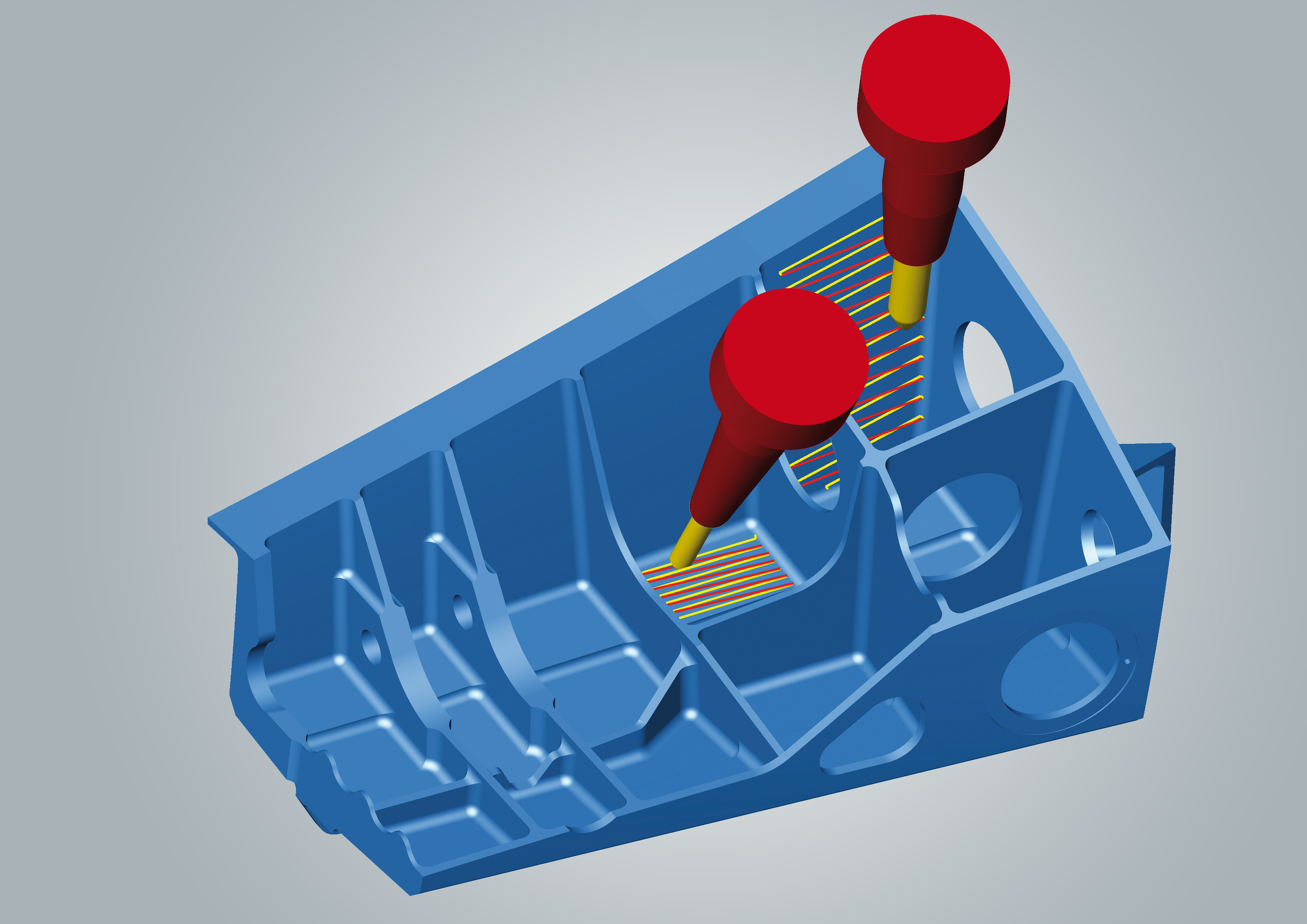 Mit dem 5-Achs-tangentialen Ebenenschlichten hat OPEN MIND eine besondere CAM-Innovation für das Bearbeiten von Ebenen entwickelt. Zusammen mit dem konischen Tonnenfräser lassen sich Zeiteinsparungen von bis zu 90 Prozent erzielen. Durch die großen Radien der konischen Tonnenfräser sind Bahnabstände von 6 und 8 mm möglich. Daraus resultieren optimale Oberflächen und längere Werkzeugstandzeiten.
