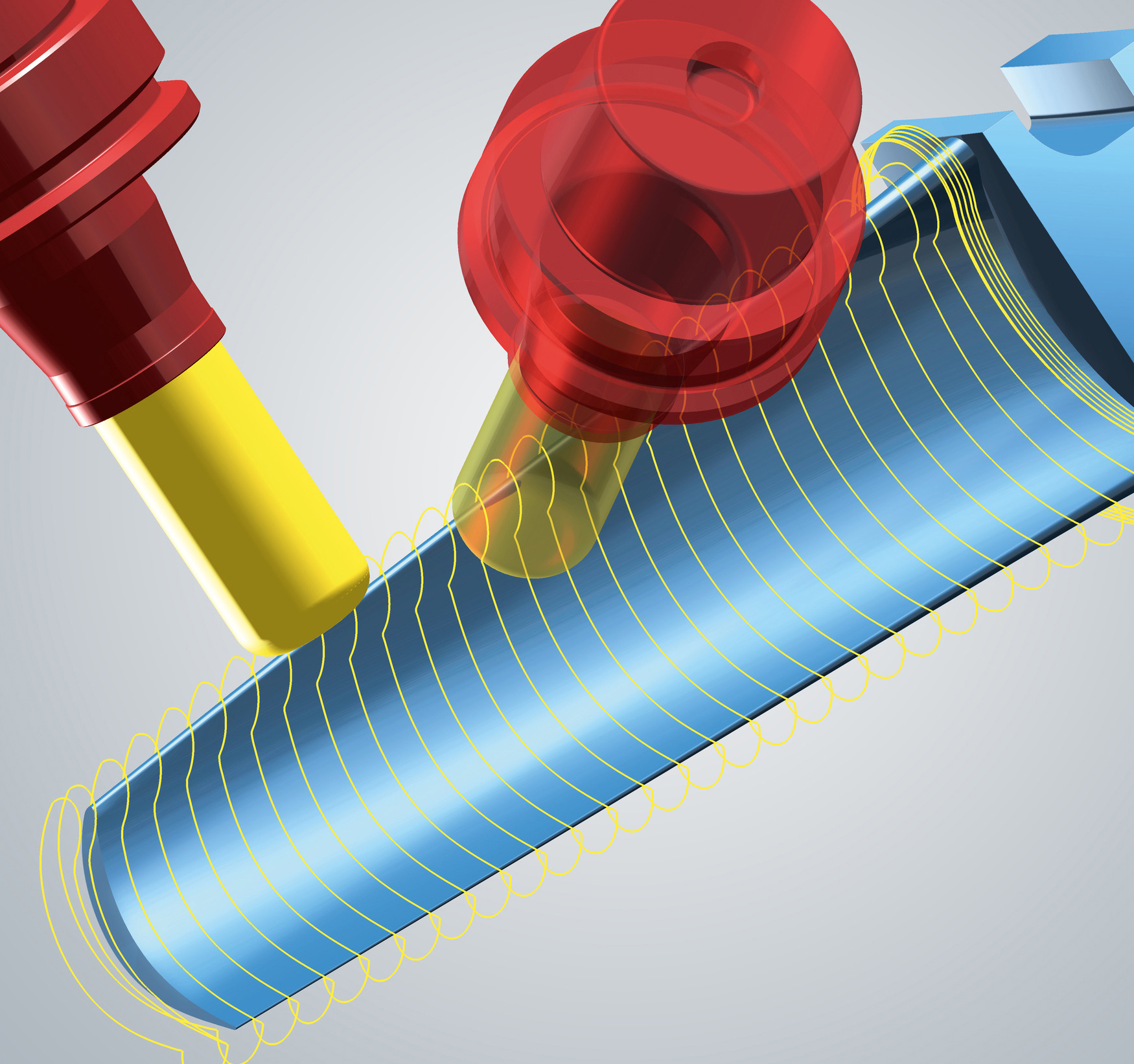 Für sichere und schnelle HPC-Bearbeitungen stellt das Schruppmodul des Performance-Pakets zahlreiche Zyklen für das Fräsen in trochoidalen Werkzeugbahnen zur Verfügung. Eine dynamische Vorschubanpassung an die vorhandenen Schnittbedingungen sorgt dafür, dass immer mit der höchstmöglichen Vorschubgeschwindigkeit gefräst wird. Das Ergebnis sind optimale Fräswege mit maximalem Materialabtrag bei reduzierten Fertigungszeiten. Sowohl prismatische als auch gekrümmte Bauteilflächen sind auf diese Weise äußerst schnell zu schruppen.