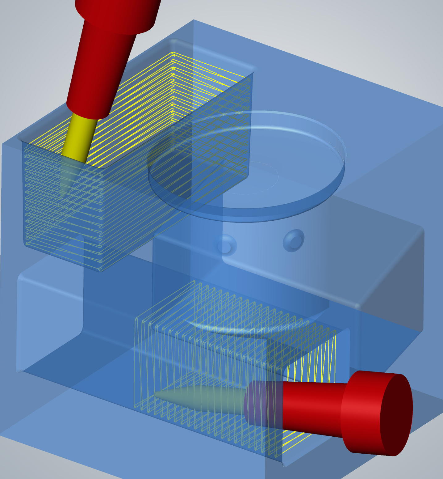 Die sehr hohen Oberflächengüten wären mit dem klassischen Verfahren, dem Abzeilen mit Kugelfräsern, niemals in der gleichen Zeit zu erreichen. Mit hyperMILL® lassen sich beste Oberflächen durch die geschickte Betrachtung der Kontaktsituation erreichen. Das Werkzeug ist immer automatisch optimal an die zu bearbeitende Fläche angestellt. Auch schwer zugängliche Bereiche lassen sich hocheffizient und sicher bearbeiten. Die besondere Werkzeuggeometrie und die perfekt dazu passende CAM-Strategie ermöglichen hochwertige Oberflächenqualitäten bei gleicher theoretischer Rautiefe.