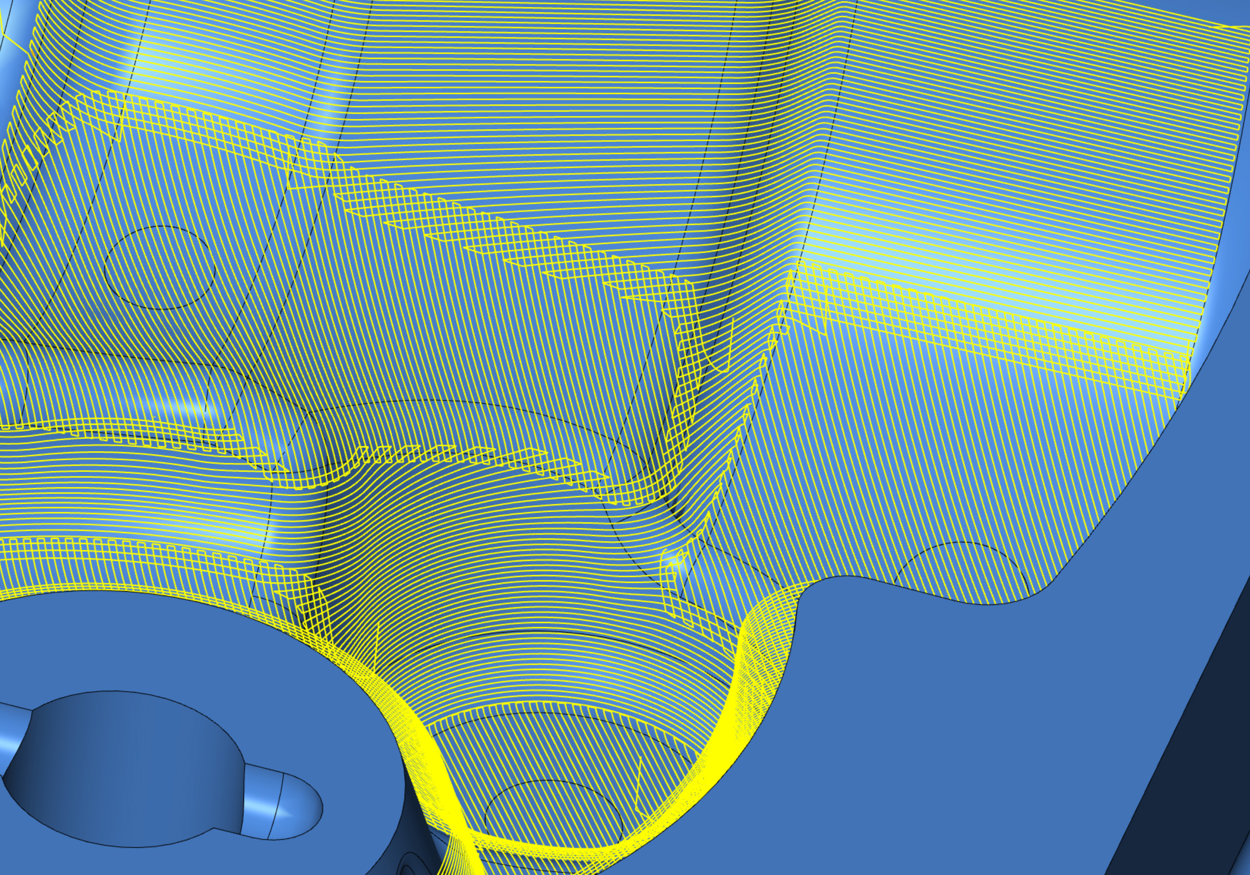 In der letzten Version schon für das hochgenaue Profilschlichten eingeführt, bietet hyperMILL® 2019.2 nun Vergleichbares im 3D-Form-Ebenenschlichten: Die Option „Hochgenauer Flächenmodus“ sorgt für spiegelglatte Oberflächen mit Toleranzen im µm-Bereich. Insbesondere im Formenbau erspart dies das Nachpolieren. Den gleichen Effekt hat auch die Funktion „Sanftes Überlappen“ beim 3D-Profilschlichten. In den Übergangsbereichen zwischen steilen und flachen Bereichen können Überlappungen zum Verschleifen der sonst entstehenden Grenzen definiert werden. Durch ein leichtes Abheben des Werkzeugs wird dabei ein perfekter, nicht spürbarer Übergang zur danebenliegenden Fläche erzielt.