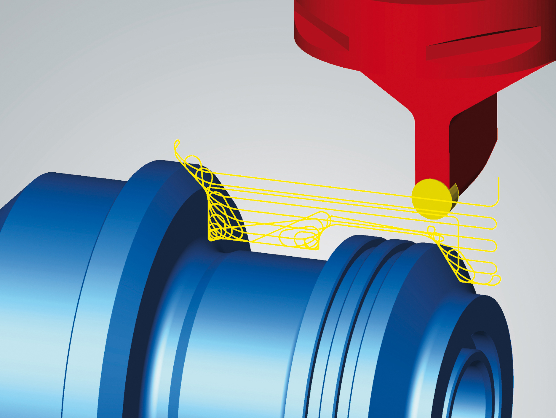 In der letzten Version von hyperMILL® MAXX Machining wurde das Schruppen mit trochoidalen Werkzeugbahnen implementiert. Optimierte Verbindungswege und flüssige Maschinenbewegungen gewährleisten eine hochperformante Bearbeitung. Hierbei können deutlich höhere Schnittwerte als bei konventionellen Schruppmethoden gefahren werden. Die Version 2019.2 gewährleistet noch mehr Prozesssicherheit für das High-Performance-Drehen: Eine Standzeitüberwachung ermöglicht es, die Verwendung eines Werkzeugs anhand der zurückgelegten Strecke, der Anzahl der Werkzeugbahnen oder eines Zeitlimits zu beschränken. Ist das definierte Limit erreicht, wird automatisch ein Abfahrmakro erstellt und der Job beendet.