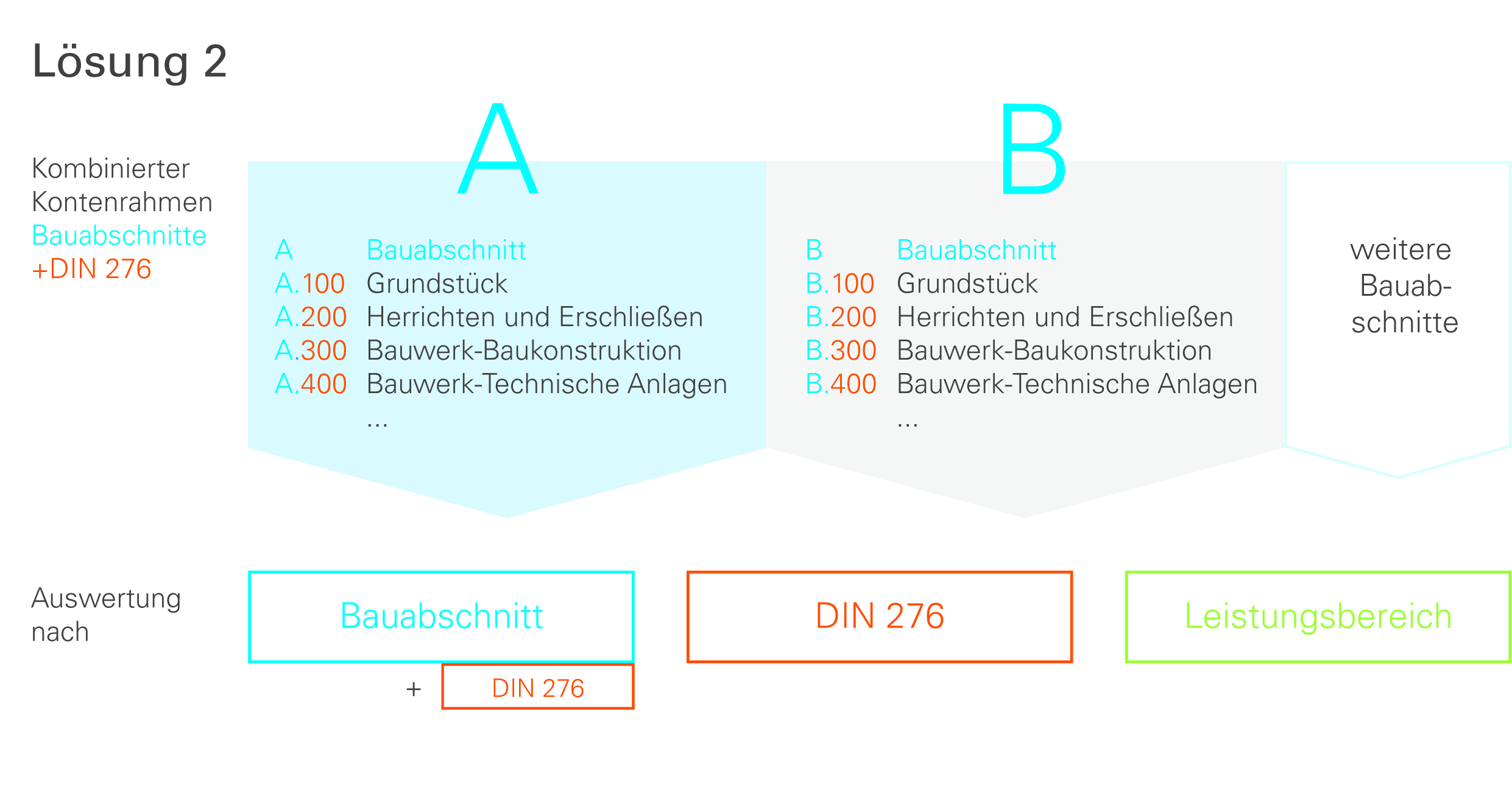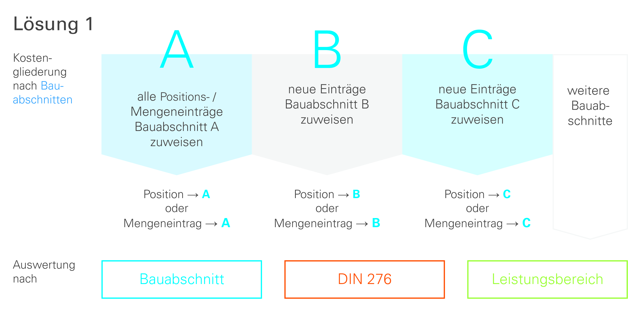 Lösung 1: Es werden jeweils neue Kostengliederungen für die einzelnen Bauabschnitte angelegt