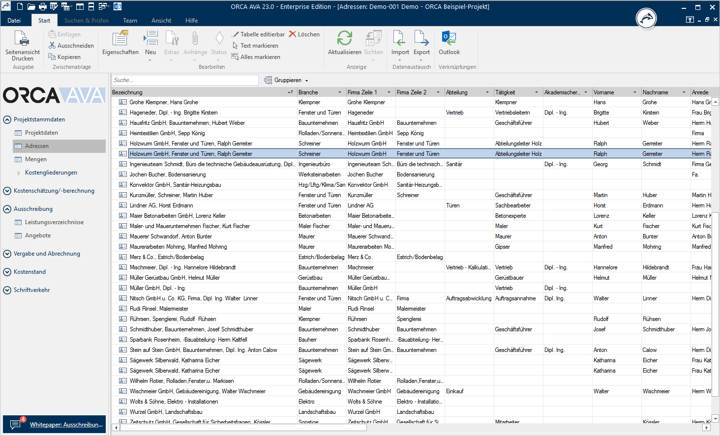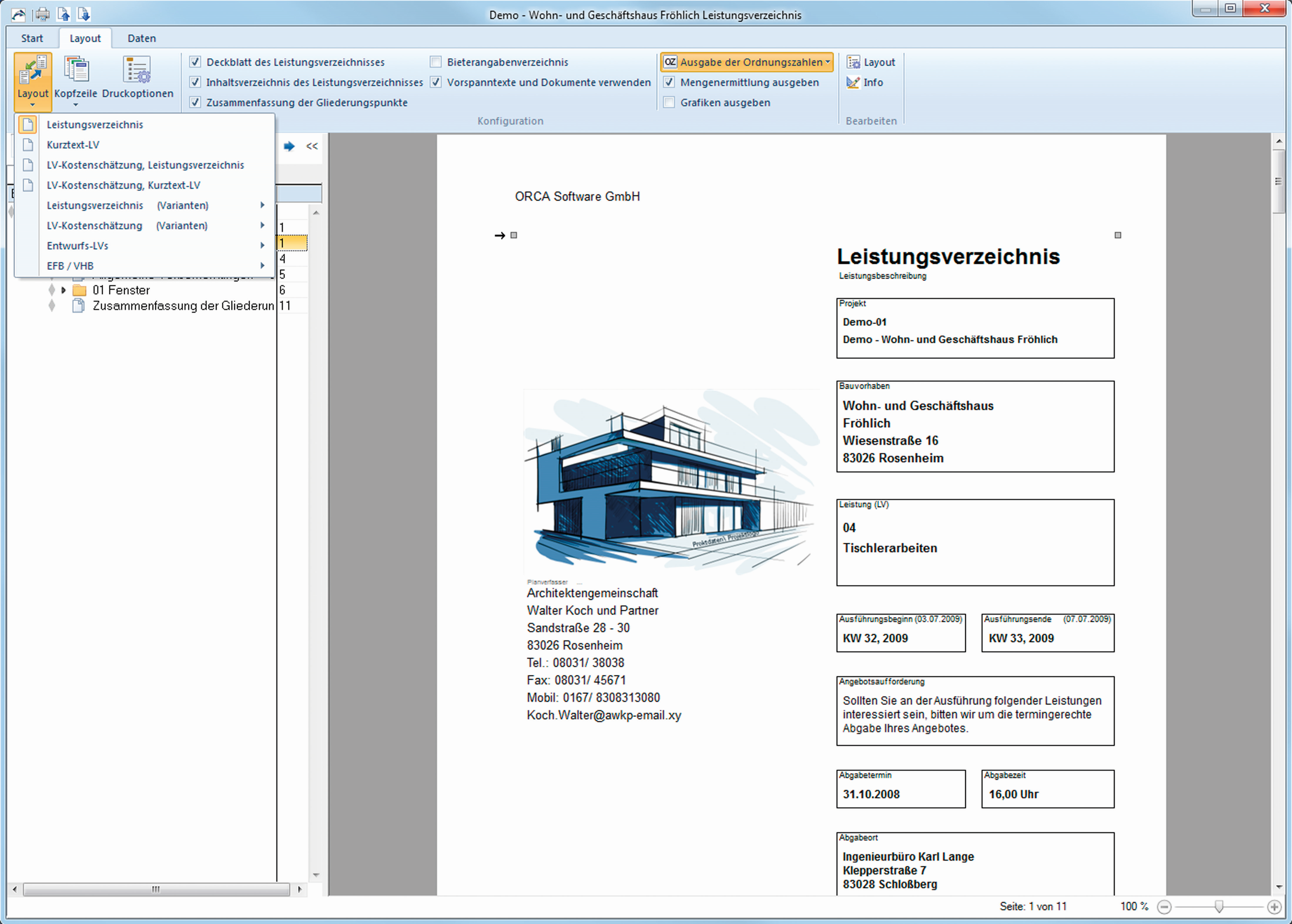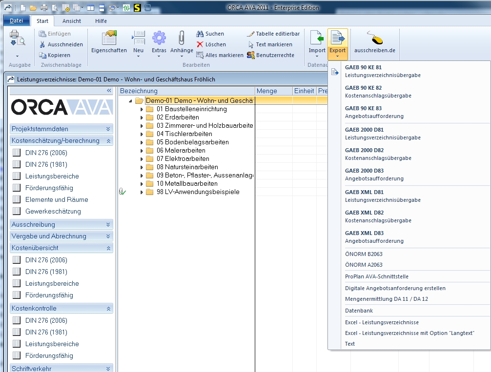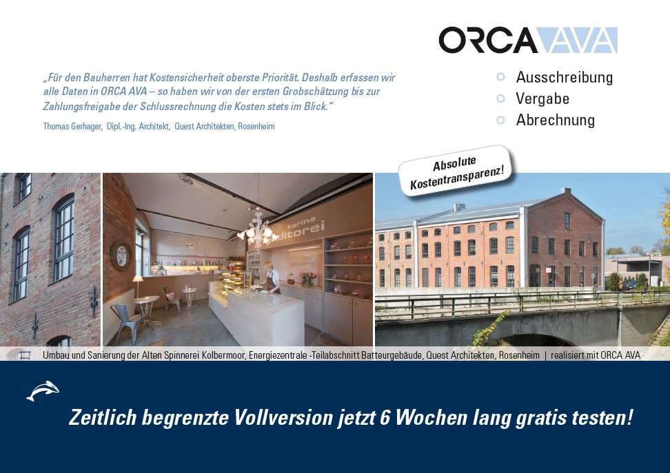 ORCA AVA ist das Komplettprogramm zur Kostenermittlung nach DIN 276, Ausschreibung, Vergabe, Kostenkontrolle und Abrechnung von Bauleistungen. Die Bausoftware ist geeignet für Architekten, Planer und Ingenieure.