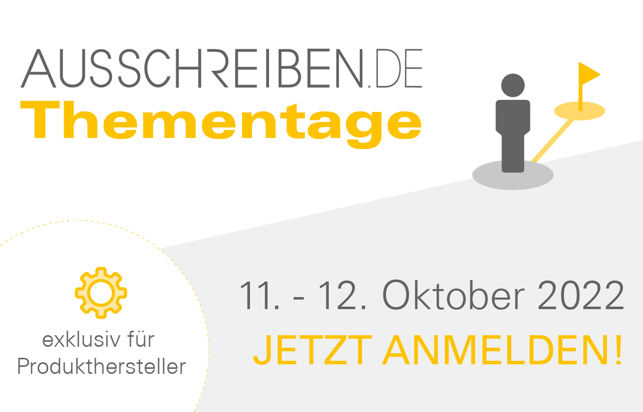 Exklusiv für Produkthersteller: AUSSCHREIBEN.DE Thementage 11. & 12.10.2022 Live – online – kostenfrei – nachhaltig