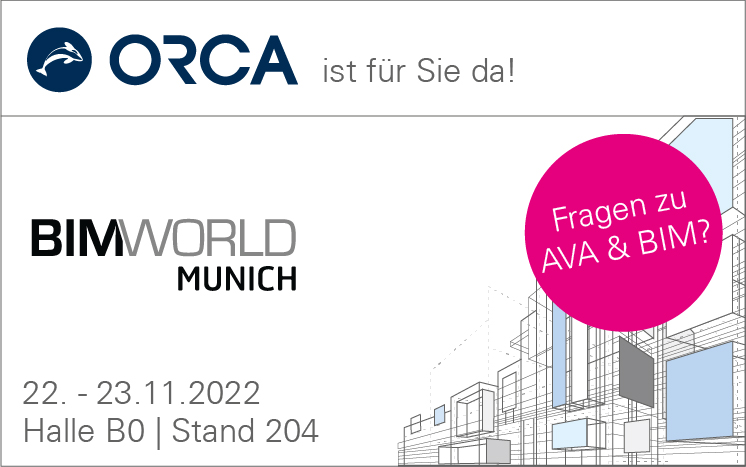 Die ORCA Software informiert auf der BIM World MUNICH rund um ihre Produkte ORCA AVA und AUSSCHREIBEN.DE.