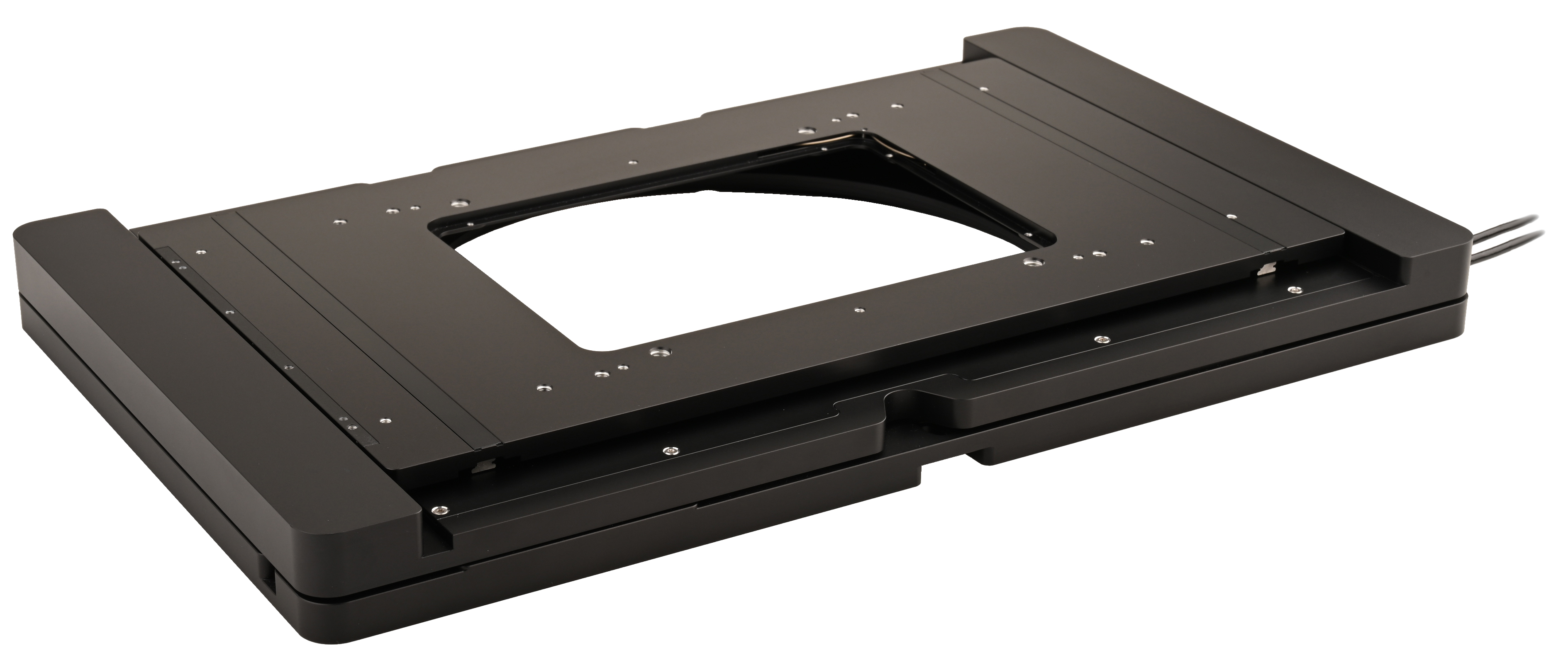 The stage is mechanically compatible with major models from leading microscope manufacturers like Nikon Eclipse Ti and Ti2, Leica DMI6000 and DM8, Olympus IX, IX2, and IX3, as well as Zeiss Axio Observer and can be mounted on any of these models. The U-781 unfolds its full potential when using the extensive range of accessories, which includes various sample holders (slides, Petri dish, microtiter plate) and scanning Z piezo stage inserts.