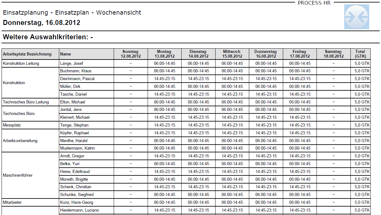 PROCESS HR - Personaleinsatzplanung Einsatzplan