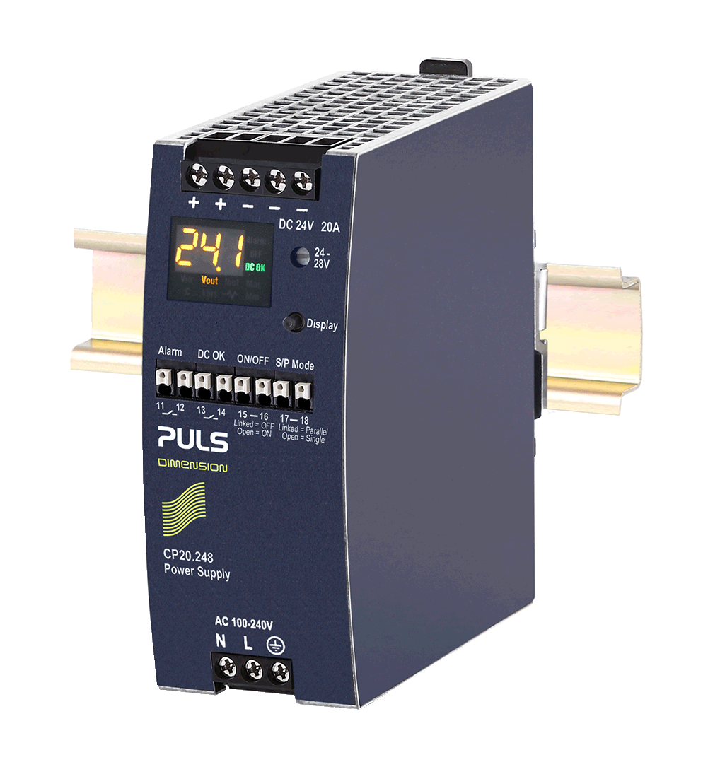 Smarte 480 W DIN-Schienen-Stromversorgung mit IO-Link-Schnittstelle und Display von PULS.