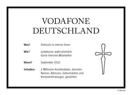 Bei einem Einbruch in interne Server von Vodafone Deutschland werden Stammdaten von zwei Millionen Kunden gestohlen. Betroffen sind personenbezogene Daten inklusive Namen, Adressen und Kontoinformationen. Wahrscheinlich ist ein Mitarbeiter Urheber des Angriffs.