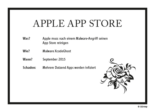 Der Apple App Store ist in das Visier von unbekannten Hackern geraten. Nachdem die infizierten Apps einer IT-Sicherheitsfirma aufgefallen sind, muss Apple seinen App Store reinigen. Dass gleich mehrere Dutzend infizierte Apps in den App Store gelangen konnten, soll daran liegen, dass die Entwickler eine gefälschte Version von XCode verwendet haben (XcodeGhost). Über diese Software konnte den Entwicklern die Malware untergeschoben werden.