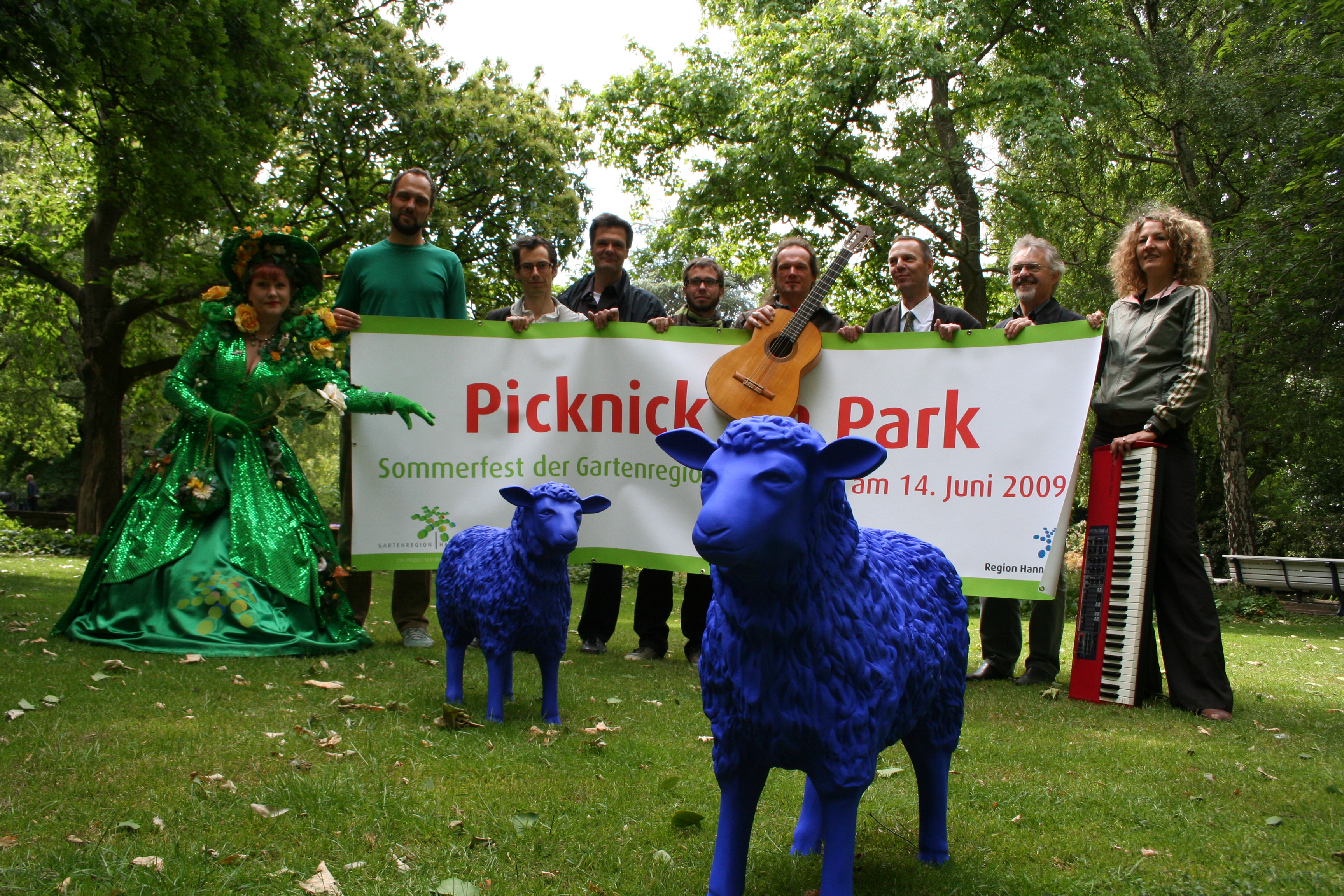 Am Sonntag, 14. Juni, ist Picknicken mitten im Stadtpark ausdrücklich erwünscht. Besucher können eigenes Proviant mitbringen oder sich vor Ort eindecken und sich bequem auf den Wiesen niederlassen. Es werden mehrere Grills zur Verfügung stehen, auf denen sich die Gäste mitgebrachtes Grillgut brutzeln können. Rund herum grasen blaue Schafe.