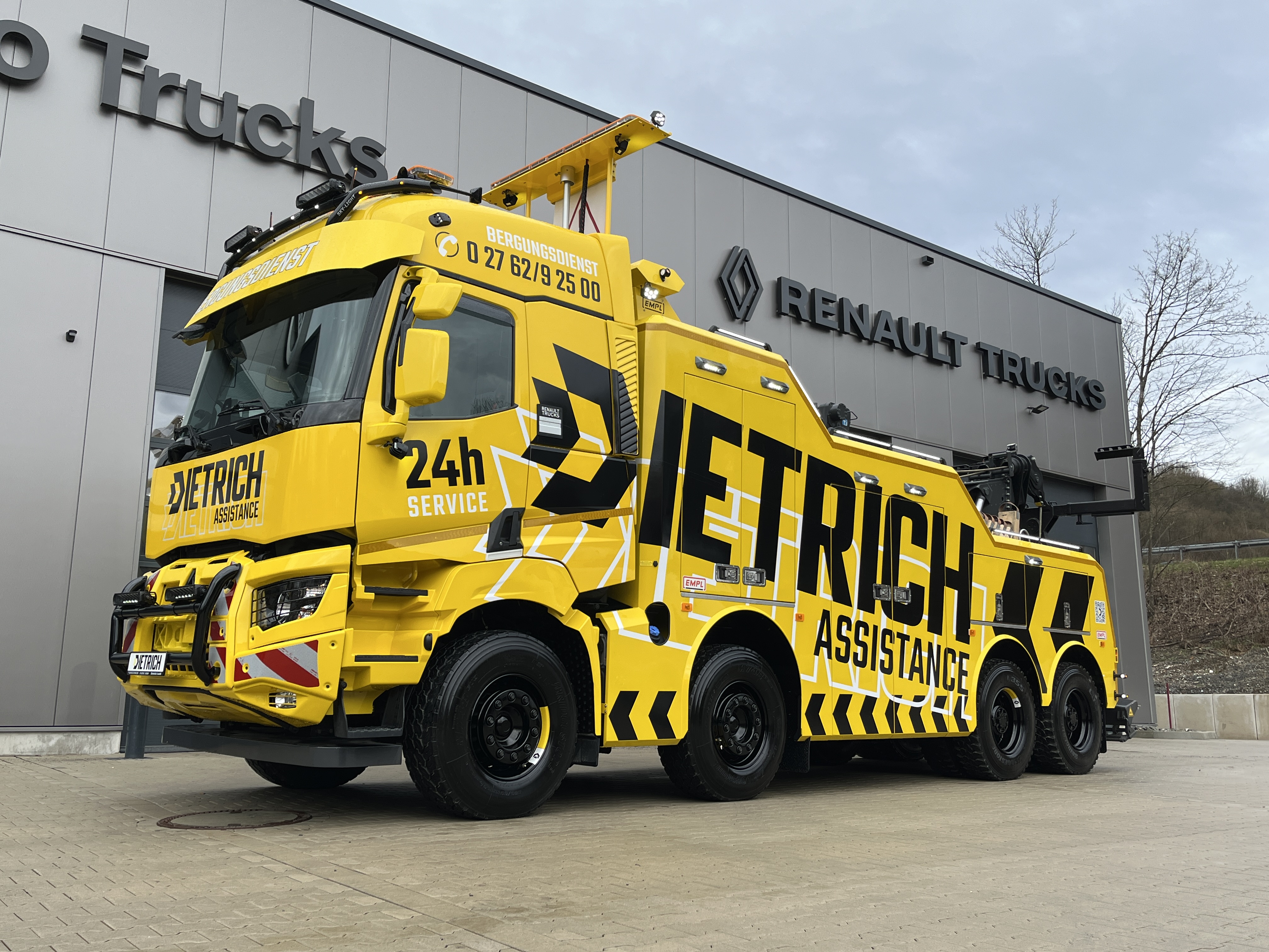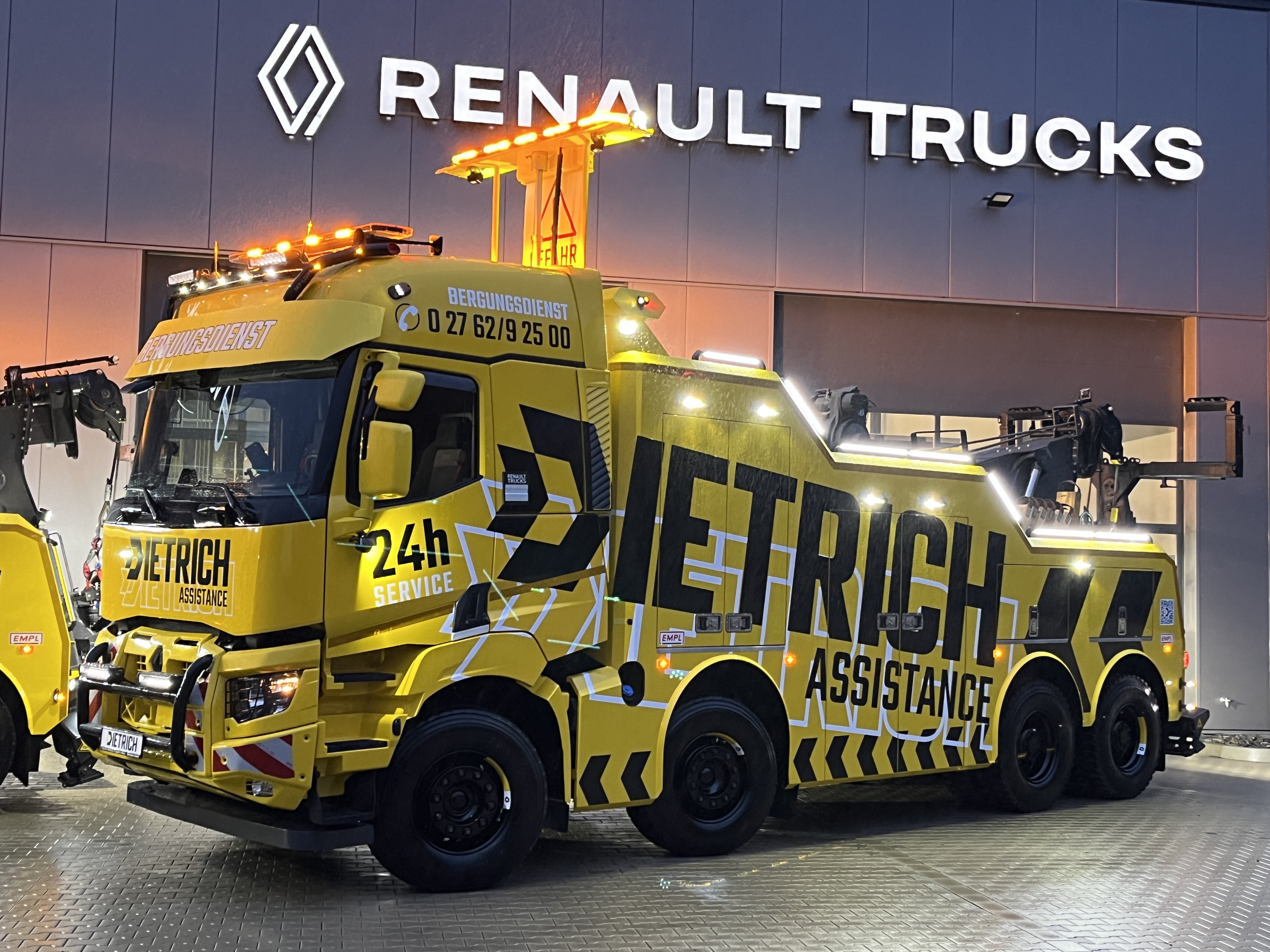 (pressebox) (Ismaning, 03.04.2024) Der Renault Trucks Servicepartner Dietrich Trucks in Wenden baut innovative Abschlepp- und Bergefahrzeuge auf. Der Renault Trucks K 520 wurde von Renault Trucks und EMPL Fahrzeugwerk GmbH speziell nach den Wünschen Dietrichs gebaut und ist das erste und einzige Fahrzeug seiner Art.