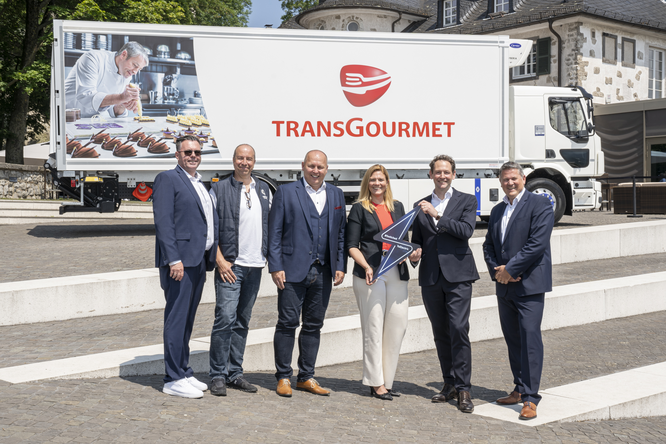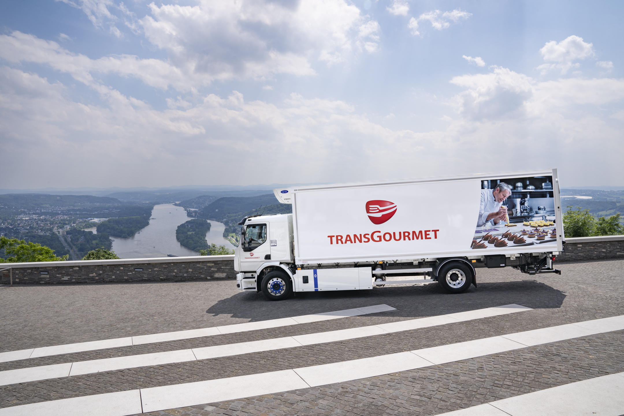 Am 7. Juni 2024 übergibt der französische Hersteller einen Renault Trucks E-Tech D Wide 4 x 2 mit Kühlkoffer an Transgourmet Deutschland auf dem berühmten Drachenfels in Königswinter. Das Fahrzeug wird für den Verteilerverkehr in Gastronomie- und Gemeinschaftsverpflegung eingesetzt. Transgourmet hat insgesamt zehn Fahrzeuge dieses Modells in Auftrag gegeben.