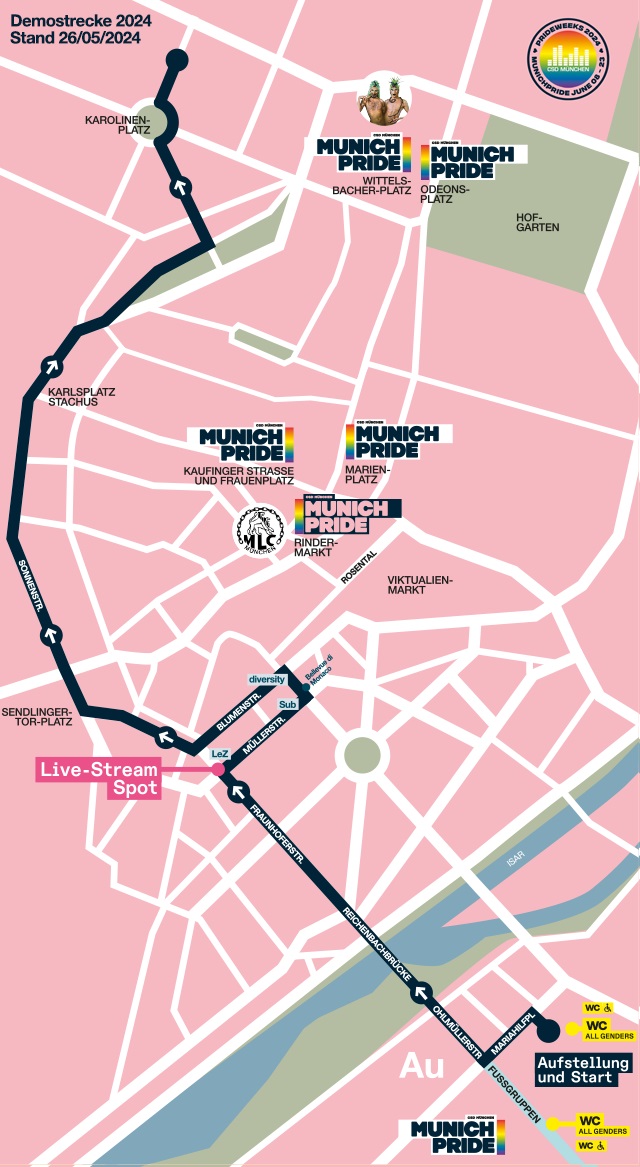 Der Christopher Street Day ist ein Tag oder ein Zeitraum, an dem queere Menschen für sich und für ihre Belange auf die Straße gehen, Öffentlichkeit herstellen und ihre Forderungen erheben. Weitere Informationen über den CSD in München finden Sie hier.