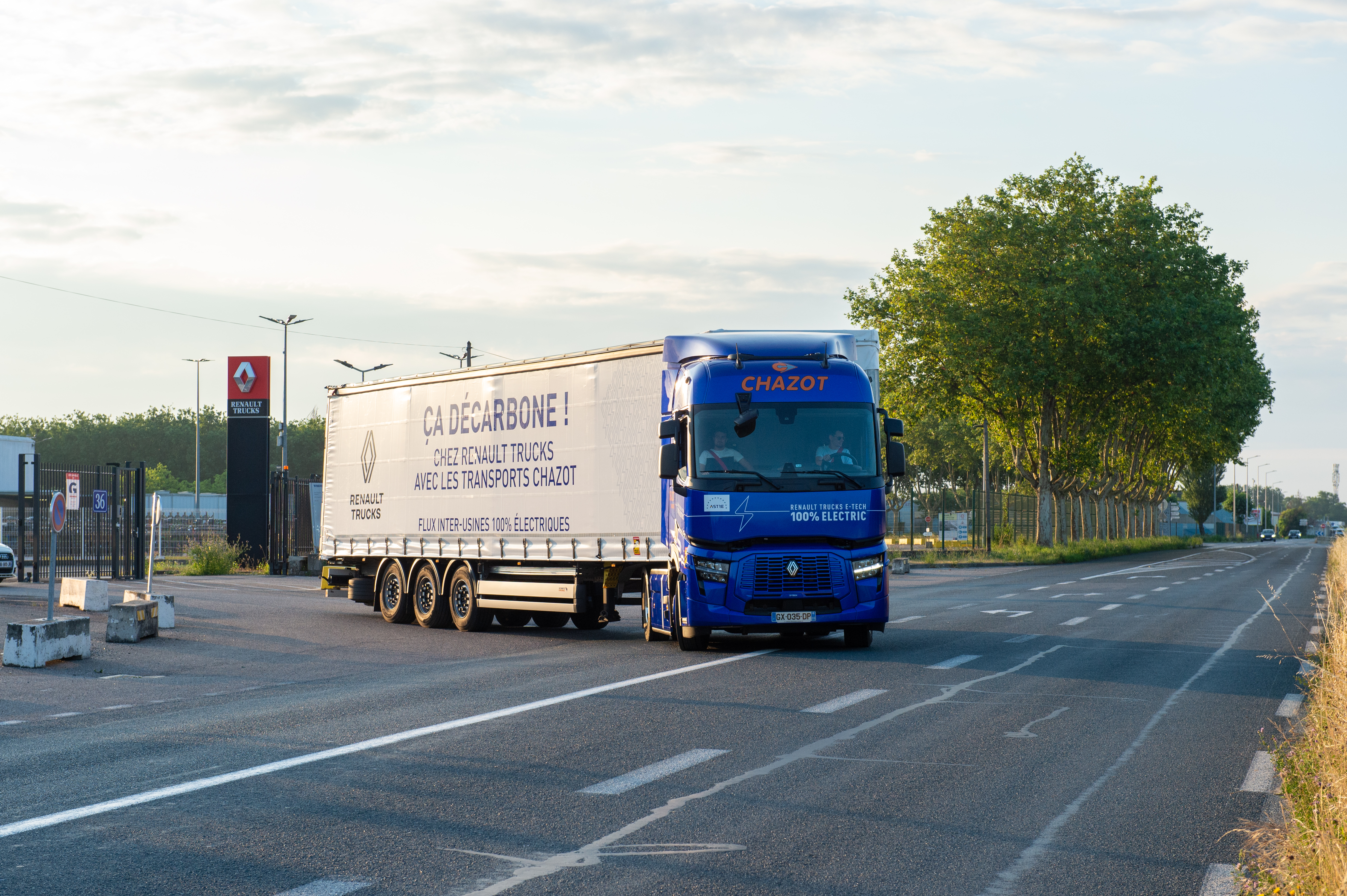 Die Einführung des elektrischen 44-Tonners ist ein weiterer Schritt in Richtung interregionaler Transport bzw. Transport über mittlere Entfernungen. So setzt auch der französische Hersteller beim Warentransport zum Werk in Bourg-en-Bresse auf den Einsatz von Renault Trucks E-Tech T 4x2-Sattelzugmaschinen.
