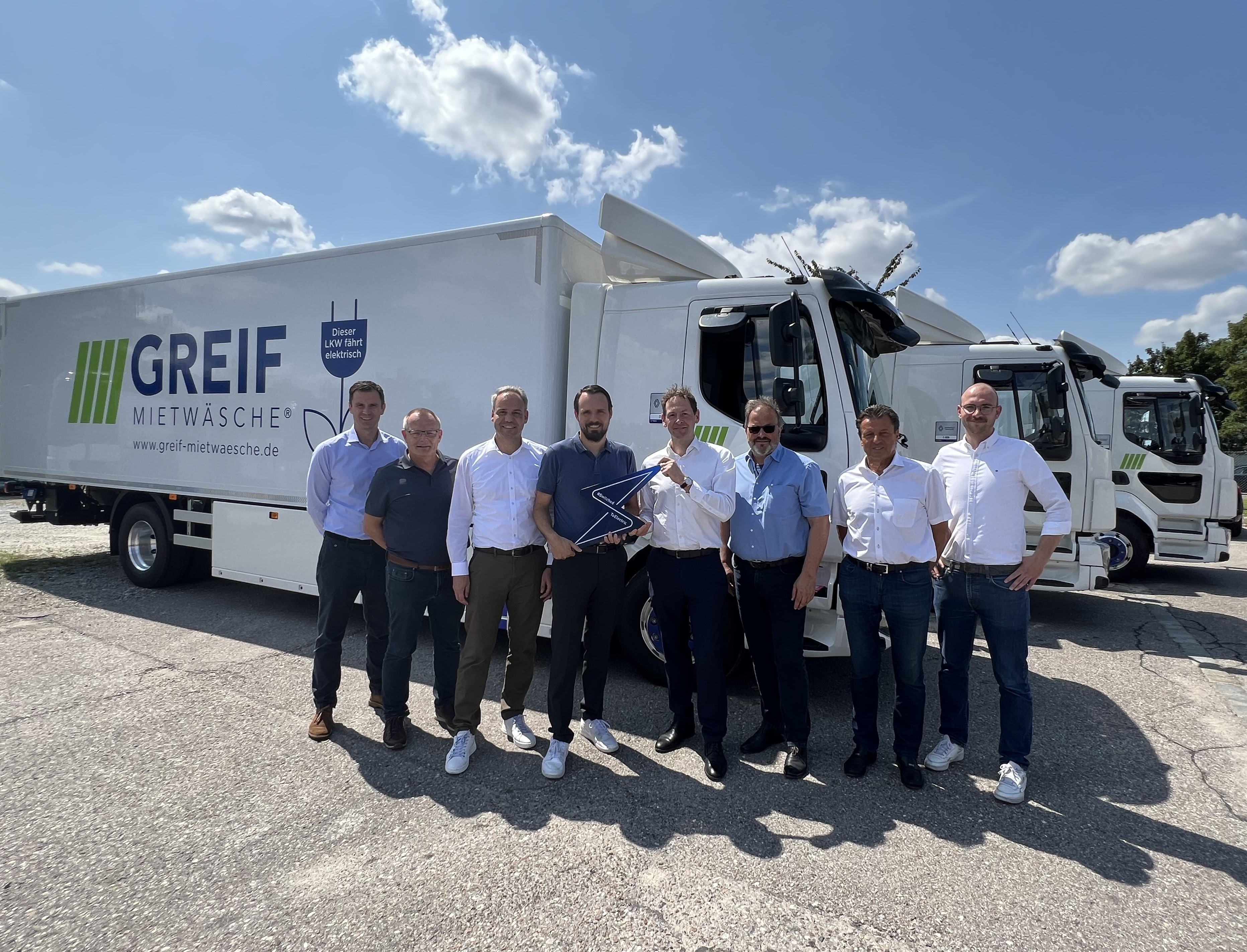 (pressebox) (Ismaning, 31.07.2024) Die Firma GREIF Mietwäsche geht gemeinsam mit Renault Trucks einen weiteren wichtigen Schritt Richtung Dekarbonisierung und nimmt drei zusätzliche Renault Trucks E-Tech D in Betrieb. GREIF Mietwäsche hat bereits zwei E-Tech D im Einsatz. Am 25. Juli 2024 wurden die Fahrzeuge in Augsburg übergeben.