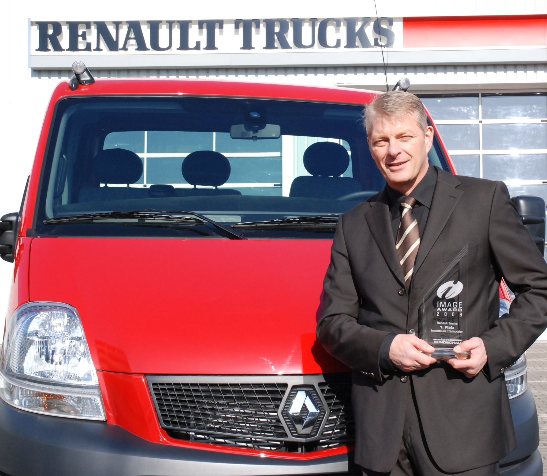 Im Herbst 2007 hat das Marktforschungsinstitut TNS Emnid im Auftrag des Wochenmagazins Verkehrsrundschau 400 Fuhrparkentscheider in Transportunternehmen, Speditionen, Industrie und Handel nach Bekanntheit und Image der wichtigsten Anbieter von Nutzfahrzeugen sowie Produkten und Dienstleistungen für den Nutzfahrzeugfuhrpark befragt. Neben dem Image fragte das Institut bei den maßgeblichen Entscheidern auch den Bekanntheitsgrad der Marke ab. Hervorgehoben wurde von der Verkehrsrundschau insbesondere die Variantenvielfalt der Fahrzeuge von Renault Trucks. Als Vollsortimenter bietet die Marke umfangreiche Branchenlösungen an. Im Rahmen der offiziellen Preisverleihung am 14. Februar in München nahm Renault Trucks Deutschland-Geschäftsführer Harold Franke die Trophäe für den ersten Platz in der Sonderwertung "Importeure Transporter" von VR Chefredakteurin Anita Würmser und VDIK-Verbandspräsident Volker Lange entgegen.