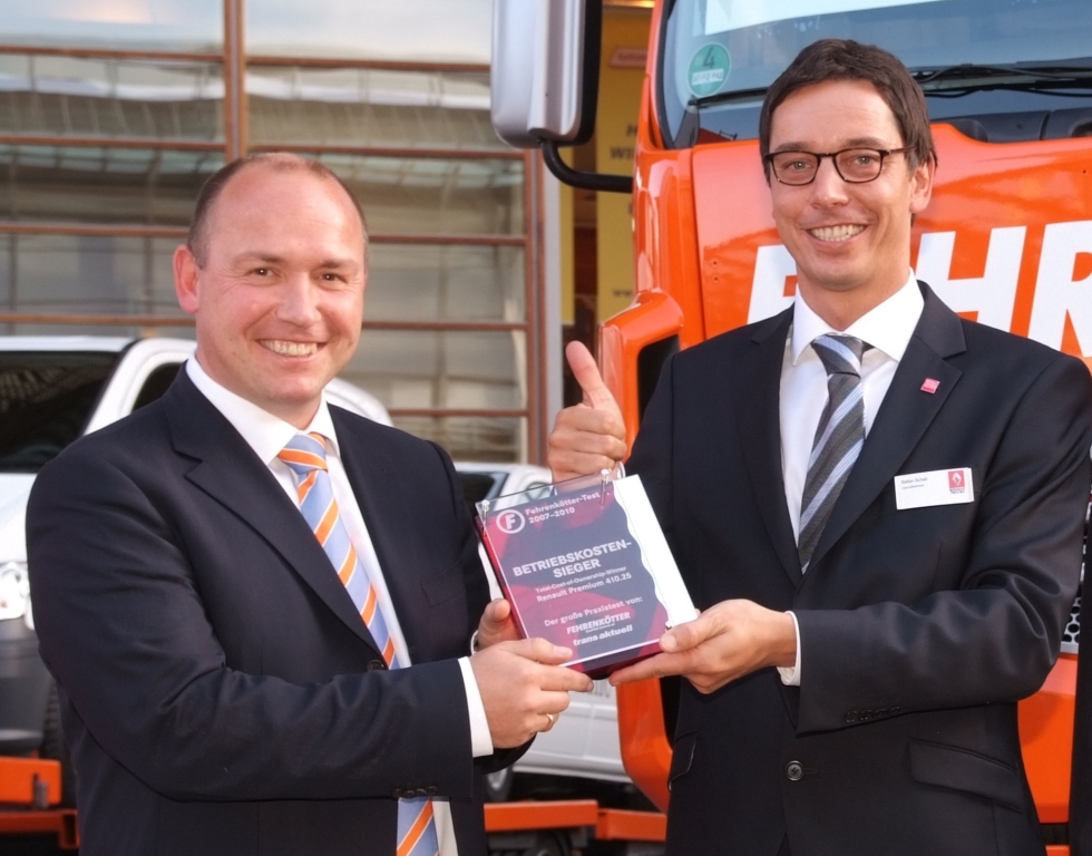 In dem dreijährigen Test unter realen Bedingungen im Fuhrpark der Spedition Fehrenkötter, an dem LKW aller sieben großen europäischen Hersteller teilnahmen, hat sich der Renault Premium Route mit 63,34 Cent pro Kilometer als der Betriebskostensieger erwiesen. Spediteur Joachim Fehrenkötter, Inhaber der gleichnamigen Spedition, und die Zeitschrift trans aktuell hatten den Test 2007 ins Leben gerufen. Ziel war es, das Fahrzeug mit den niedrigsten Gesamtkosten zu ermitteln. Auch Zuverlässigkeit und der Kundenservice der Hersteller waren dabei in die Wertung mit eingeflossen. Renault Trucks freut sich sehr darüber, dass die Qualitäten des Renault Premium Route und seine Leistungsfähigkeit in Bezug auf Kraftstoffeffizienz durch einen neutralen Langzeittest unter realen Betriebsbedingungen bestätigt worden sind.