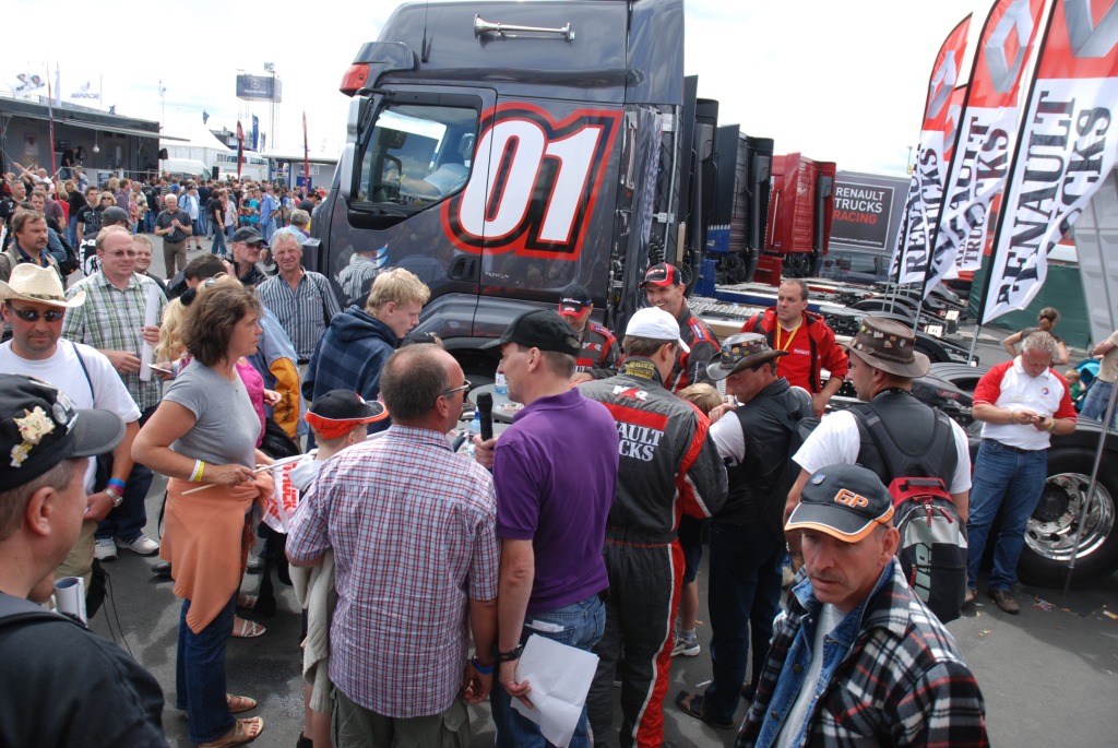 Neben den Rennläufen wartete Renault Trucks im Fahrerlager mit zahlreichen Attraktionen auf. Insbesondere das Glücksrad, an dem Fragen zu verschiedenen Themen rund um die Marke mit dem Rhombus und zum Lkw im Allgemeinen beantwortet werden mussten, zog viele Schaulustige an. Die Truck Racing-Enthusiasten kamen bei Autogrammstunden von Markus Oestreich, Markus Bösiger und Adam Lacko auf ihre Kosten. Wer sich zwischen den Rennen über aktuelle Modellneuheiten von Renault Trucks informieren wollte, hatte dazu in der umfangreichen Fahrzeugpräsentation Gelegenheit.