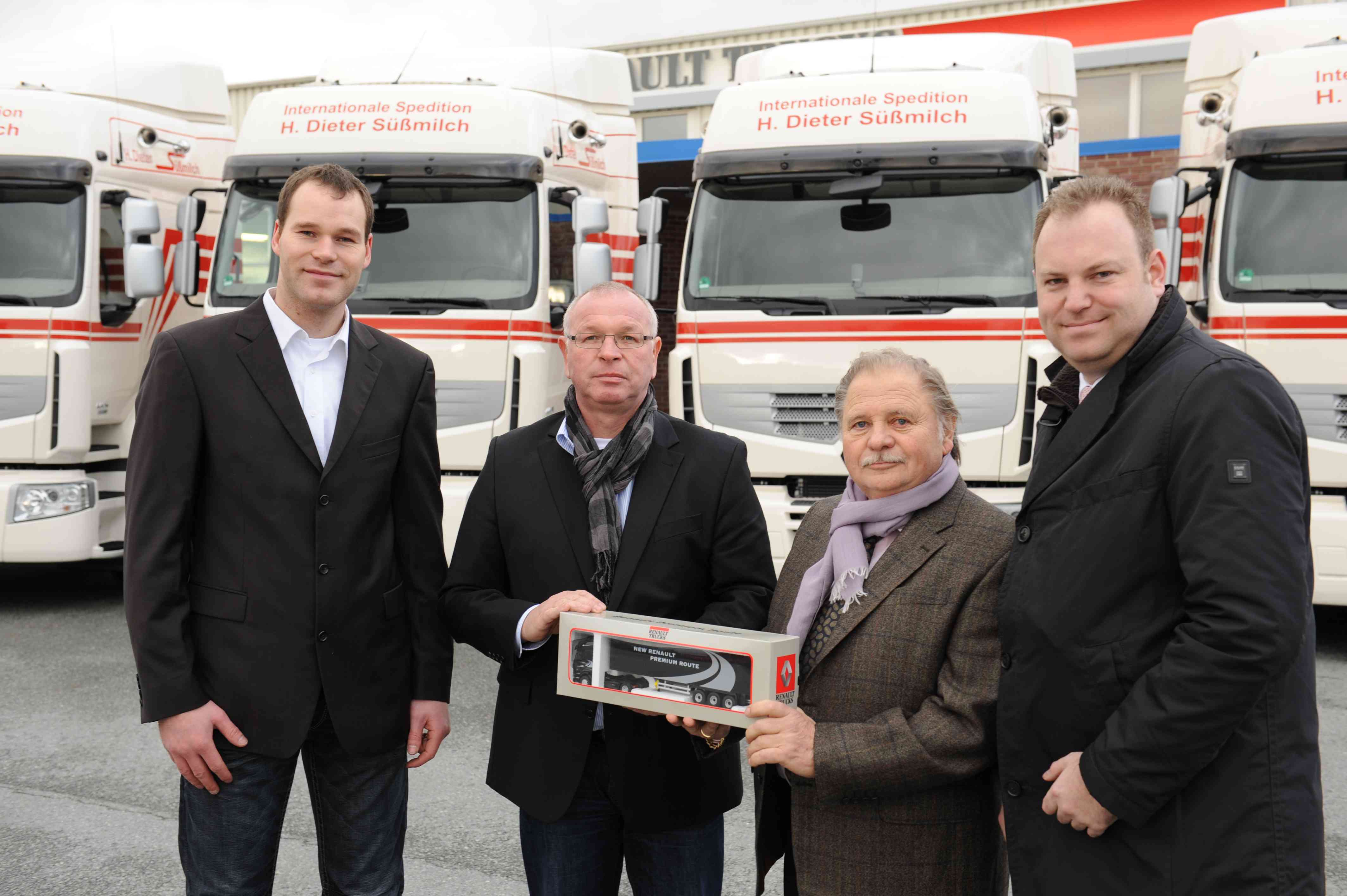 "In der strukturschwachen Region im östlichen Niedersachsen und in Westmecklenburg existieren nur wenige Transportunternehmen. Umso bedeutender ist für uns der Schritt, zukünftig enger mit der Spedition Süßmilch, die mit 60 schweren Lastzügen zu den größeren der Branche gehört, zusammenarbeiten zu können. Es freut mich, dass unsere modernen, umweltfreundlichen und wirtschaftlichen 18-Tonner den Inhaber Hans Dieter Süßmilch so deutlich überzeugt haben", sagt Michael Hebbinghaus, verantwortlicher Gebietsverkaufsleiter von Renault Trucks Deutschland. Zusammen mit dem Schweriner Verkaufs- und Serviceteam will er alles tun, damit sich die hohen Erwartungen an die Renault Premium-Flotte auch langfristig erfüllen.