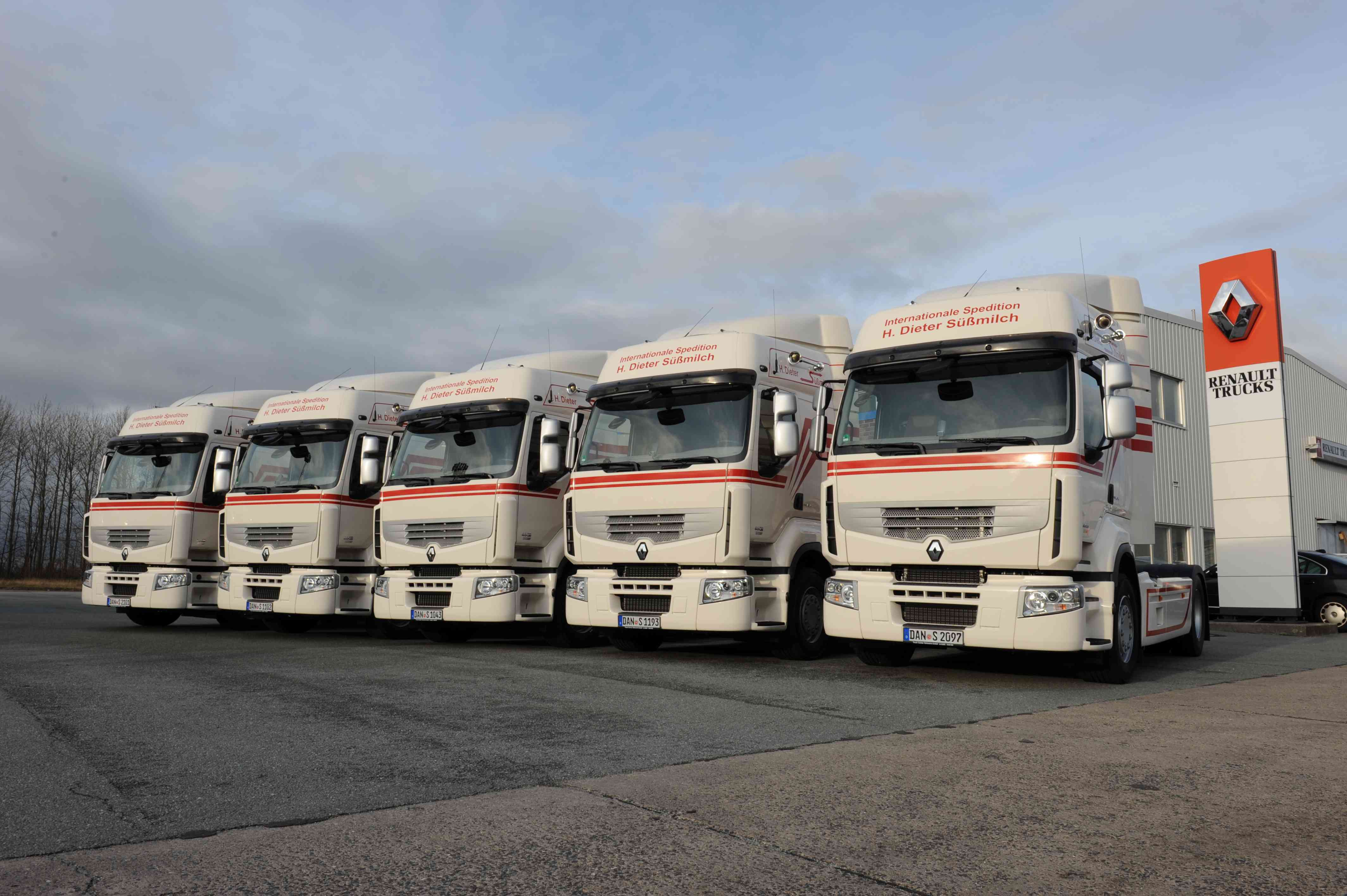 (pressebox) (Brühl, 16.01.2012) Ende 2011 hat die Spedition Hans Dieter Süßmilch in Dannenberg fünf neue Renault Premium Route in Dienst gestellt und damit ihre Flotte von Fahrzeugen mit Rhombus im Kühlergrill erweitert. Insgesamt betreibt die inhabergeführte Spedition 60 Lkw, die im nationalen und internationalen Fernverkehr zum Einsatz kommen. Die Sattelzüge sind flexibel einsetzbar und transportieren von Stahl über Lebensmittel bis hin zu Arzneimittel alles, was die breitgefächerte Kundschaft wünscht. Die neuen 460 PS starken Premium-Sattelzugmaschinen in EEV-Ausführung sollen den Fahrern bei Süßmilch die Arbeit erleichtern und darüber hinaus helfen, die Kraftstoffkosten zu senken.