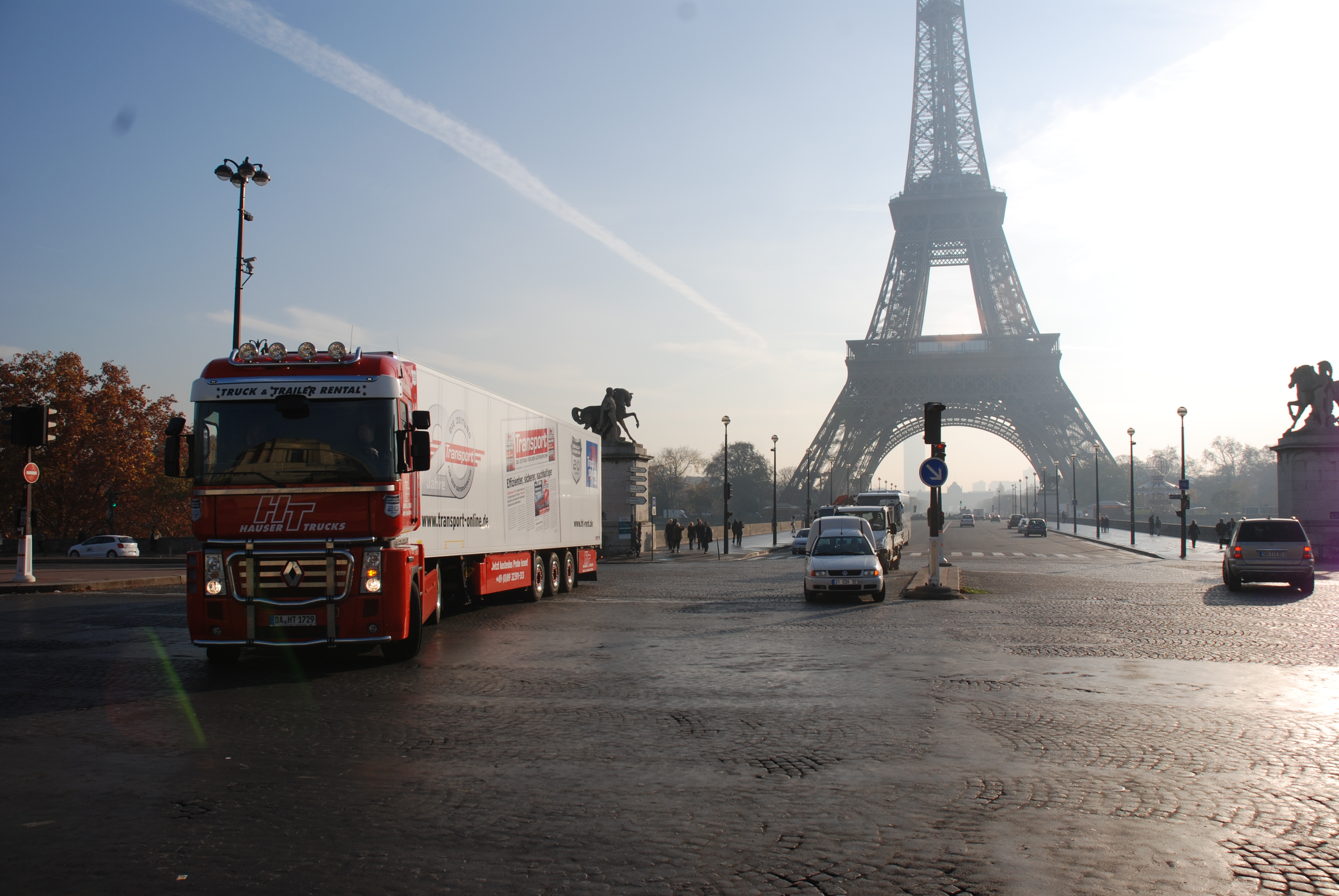 Auf seinem ersten Stopp machte der Magnum zunächst im Hafen von Dieppe in der Normandie Station. Direkt vom Ärmelkanal holte sich das Team beim Chef des Fischmarkts fangfrische Meeresfrüchte. Anschließend setzte der Magnum Kurs auf Paris. Im dichten Verkehr der Lichterstadt war der chromveredelte Sattelzug eine imposante Erscheinung. Dank der besonders vorsichtigen, vorausschauenden Fahrweise des Chauffeurs fädelte er sich in den Metropolen-Verkehr ein und erreichte am Fuße des Hügels Montmartre die Chocolaterie Genin. Der Schokolademeister ließ es sich nicht nehmen, dem Team höchstpersönlich einige seiner Spezialitäten für die Jubiläumsfeier mitzugeben. Danach begab sich der Magnum zum Eiffelturm für ein historisches Foto.