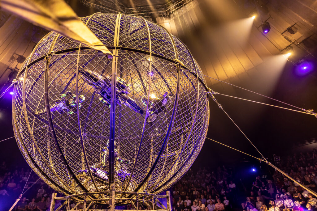 Beim Globe of Death werden die Nerven strapaziert. In einem Käfig aus Draht rasen mehrere Motorradfahrer im Kreis.