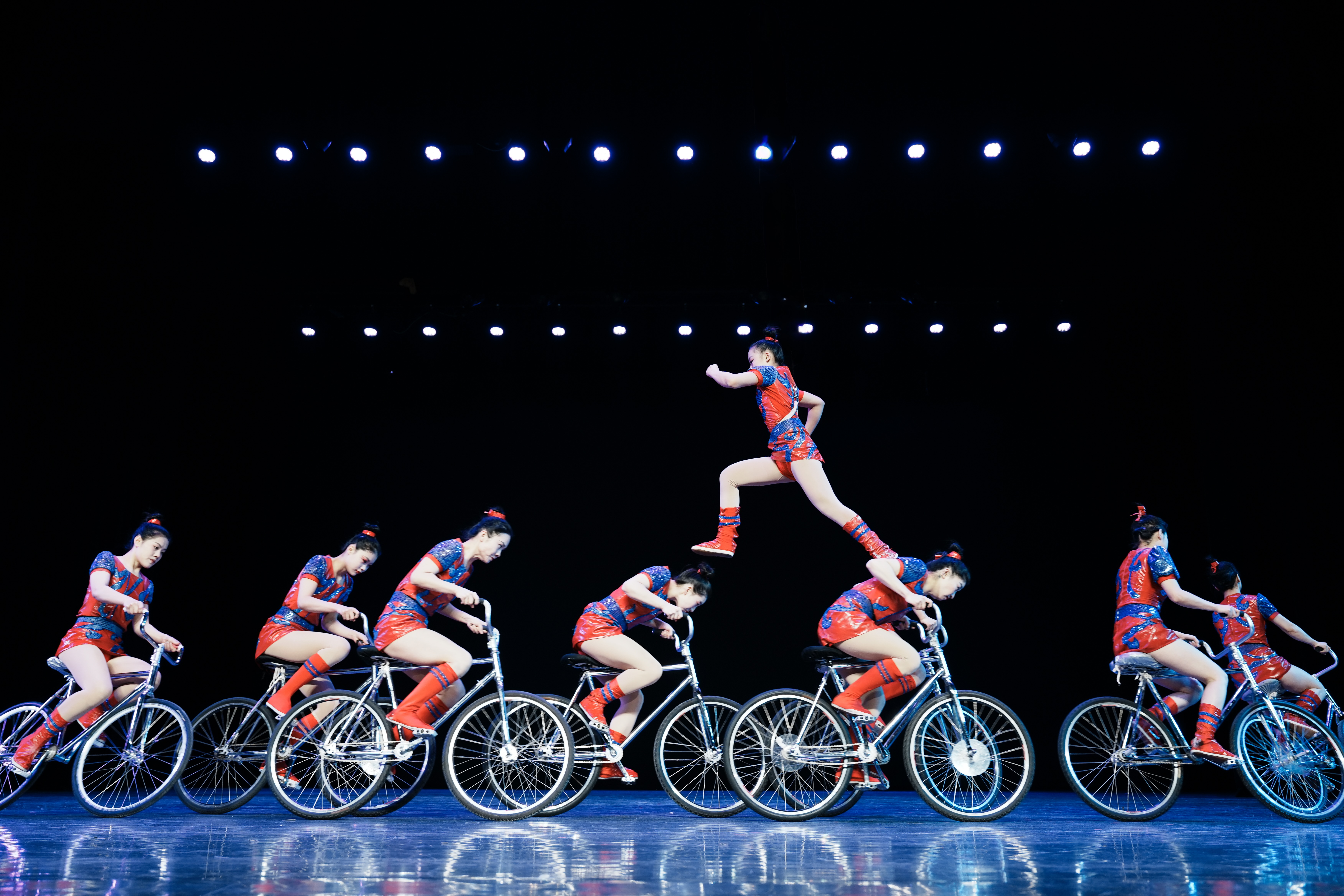 Beim Offenburger Weihnachtscircus präsentiert die 14-köpfige Hebei Acrobatic Troupe aus China atemberaubende Fahrradakrobatik.