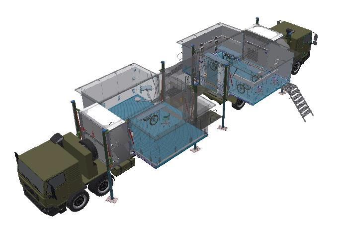 Each system includes an air conditioning unit, a power generator and an emergency surgery container equipped with the latest medical instruments. The aid-stations are part of the Bundeswehr's Modular Medical Facilities (MSE) system.